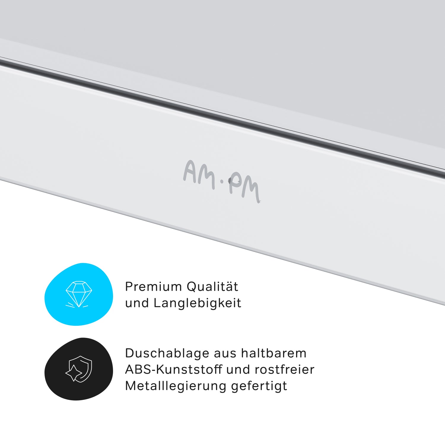 Le support de douche Func est un moyen particulièrement élégant de ranger vos accessoires de douche préférés. Vous pouvez ranger tous vos ustensiles sur le grand espace de rangement.