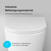 La livraison comprend un abattant WC amovible en Duroplast avec abaissement automatique. Le matériau Duroplast résistant aux rayures, associé à des fixations en acier inoxydable, garantit une longue durée de vie à l'abattant.