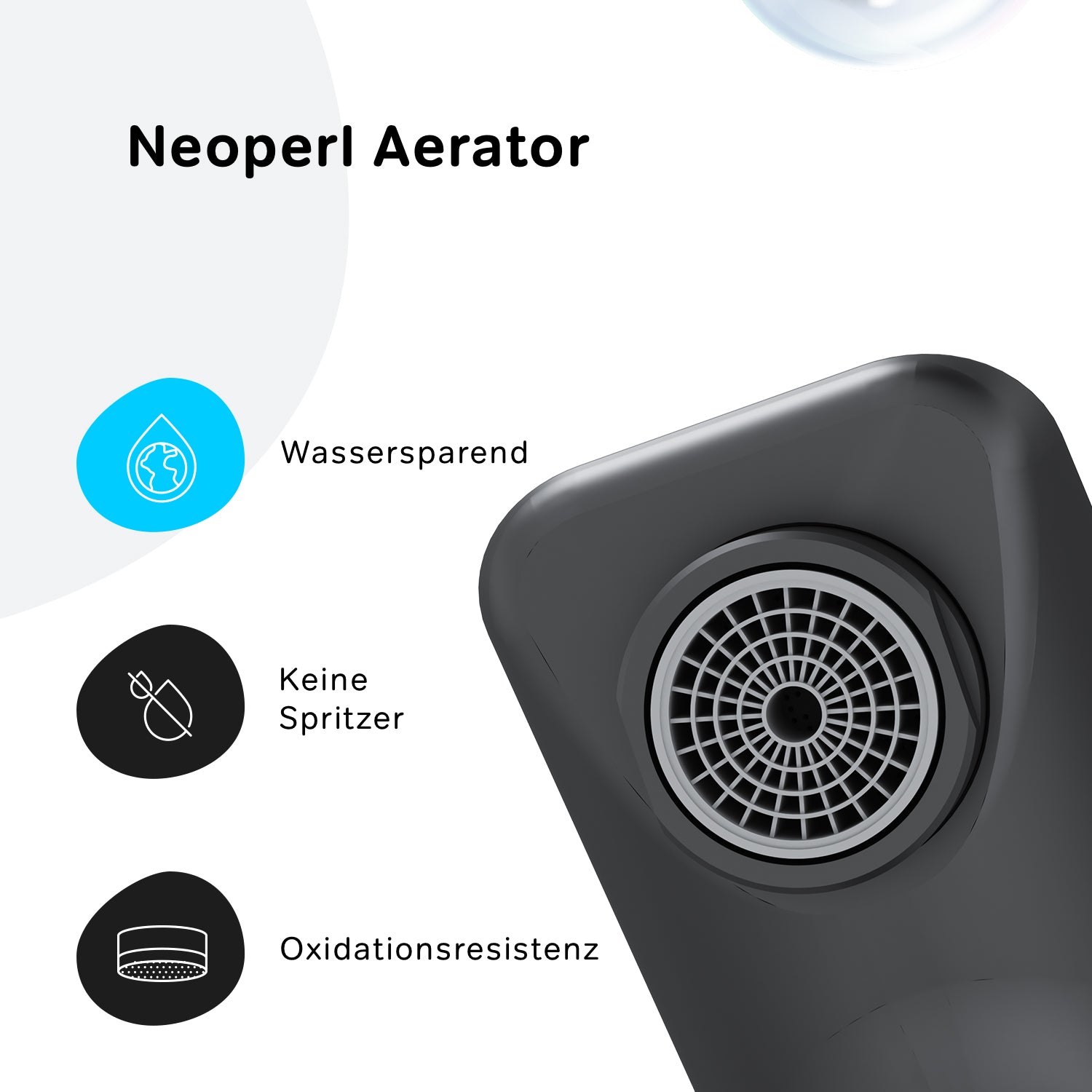 La norme SA (SA = Smart Angle) désigne un rapport mathématiquement ajusté entre la hauteur du raccord, la longueur du bec et l'inclinaison du corps du raccord. Géométrie idéale pour une utilisation confortable. Couleur noire mate élégante.