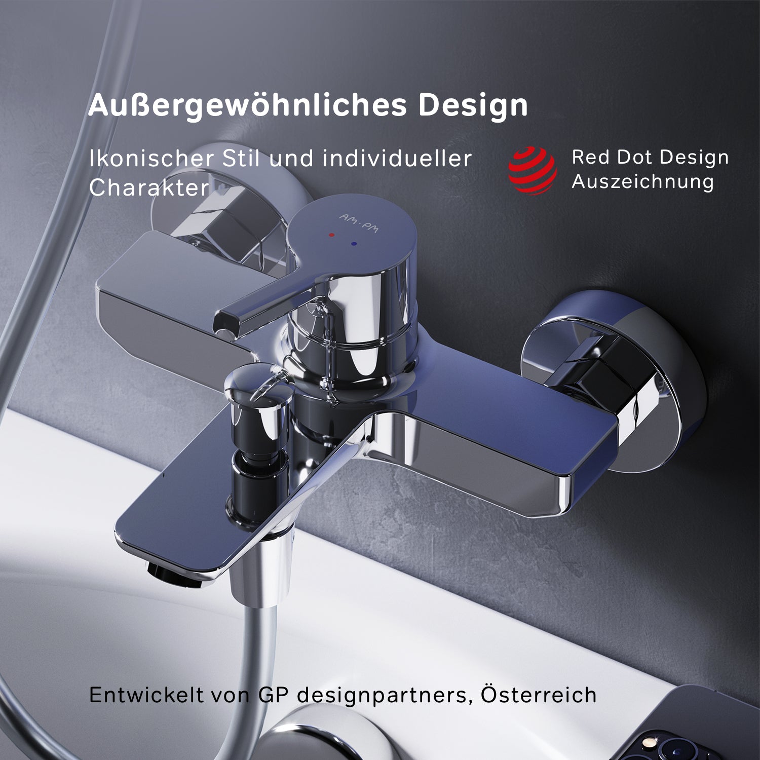 La norme SA (SA = Smart Angle) désigne un rapport mathématiquement ajusté entre la hauteur du raccord, la longueur du bec et l'inclinaison du corps du raccord. Géométrie idéale pour une utilisation confortable. Le luminaire a été conçu par l'agence de design autrichienne GP designpartners. Le X-JoyS-Le robinet est équipé d'une cartouche en céramique SoftMotion de 35 mm, spécialement développée pour AM. PM. Cette cartouche aide à la régulation de la température et résiste également aux fluctuations de pression. Le X-JoyS-Le raccord est en laiton massif. La surface est également revêtue d'Everlast. Il s'agit de la norme industrielle en matière de robustesse et de durabilité.
