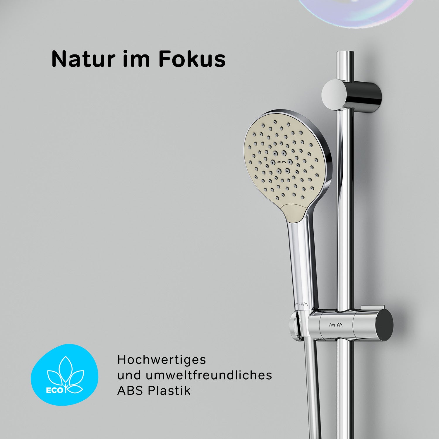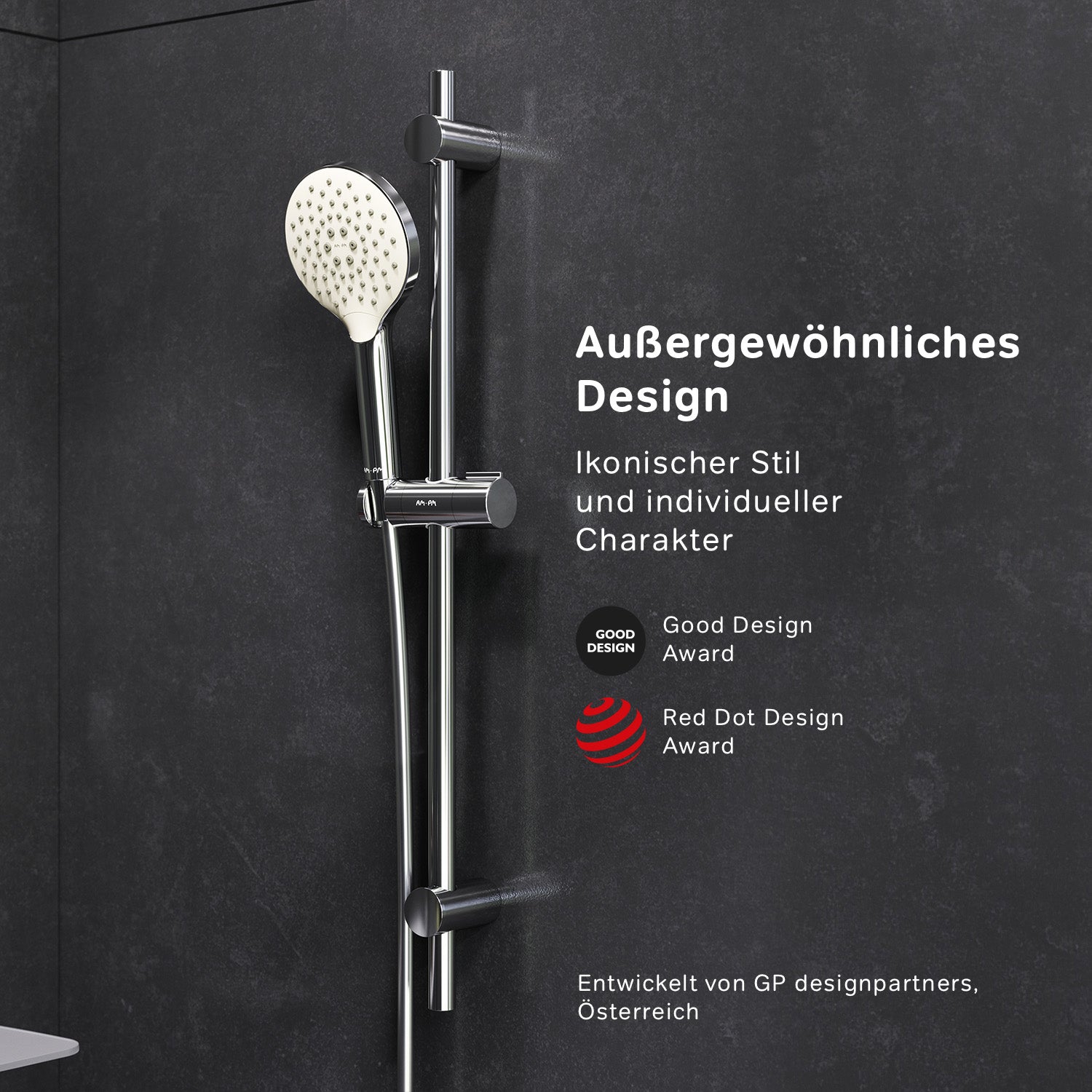 Motif et diamètre des buses uniques - le design répartit l'eau uniformément à chaque pression pour un maximum de plaisir sous la douche.