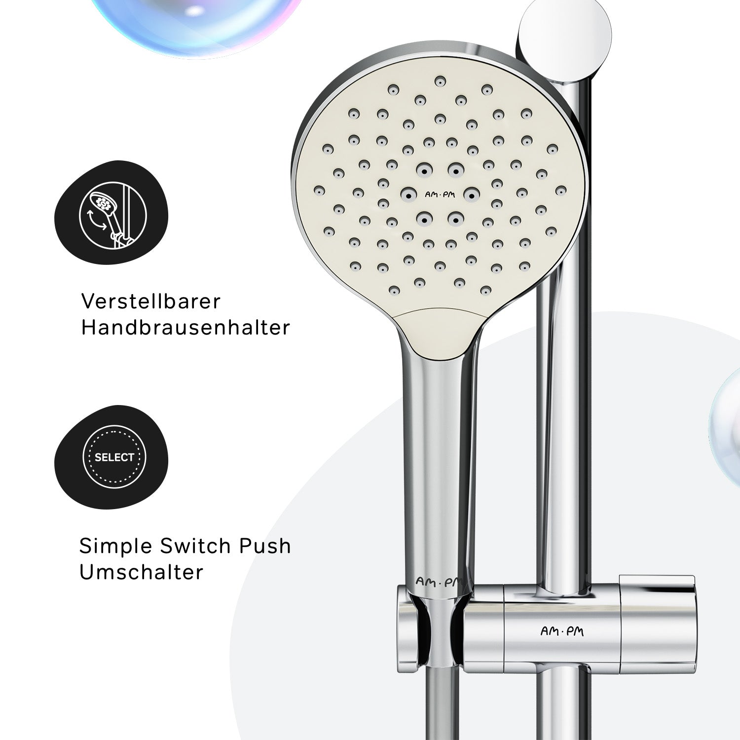 Trois modes de douchette : Spray, EnerJet et Spray + Massage avec l'innovant Simple Switch Push.