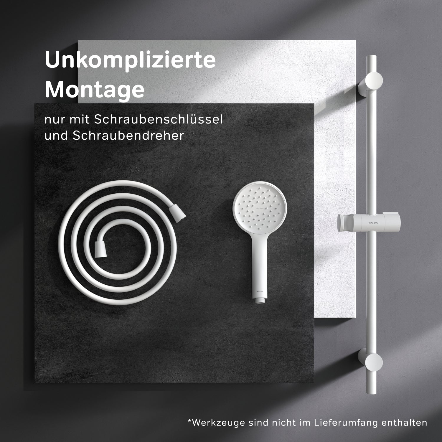 Le AM.PM L'ensemble de douche Hit en blanc mat allie style et fonctionnalité pour une expérience de douche exaltante. Cet ensemble de douche à main comprend une colonne de douche et un ensemble de pomme de douche, qui créent ensemble un environnement de douche révolutionnaire.
