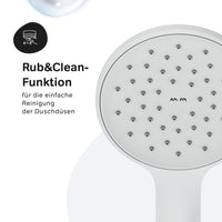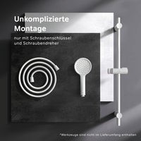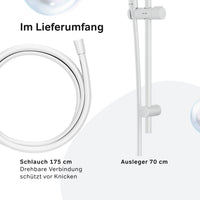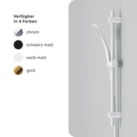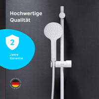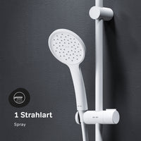 La pomme de douche assure un débit d'eau constant et ajoute une touche de sophistication avec son design moderne. La douchette à main complète l'ensemble et offre flexibilité et confort lors de la douche. La colonne de douche intègre harmonieusement ces éléments et donne à votre salle de bain une touche contemporaine. La surface mate en blanc confère à l'ensemble une touche élégante et s'adapte à de nombreux styles d'ameublement.