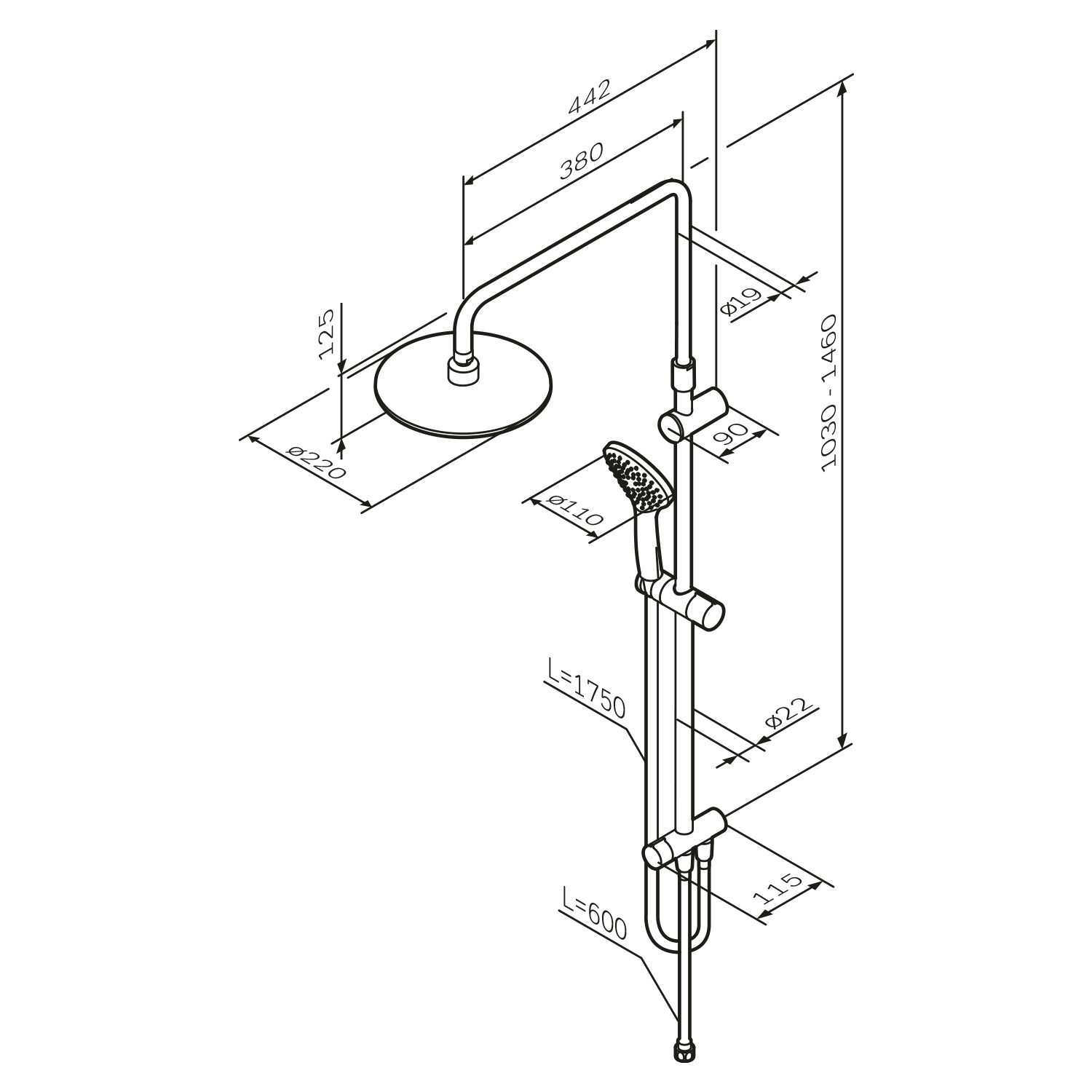 F0790022 système de douche Gem ensemble de douche à effet de pluie colonne de douche, noir