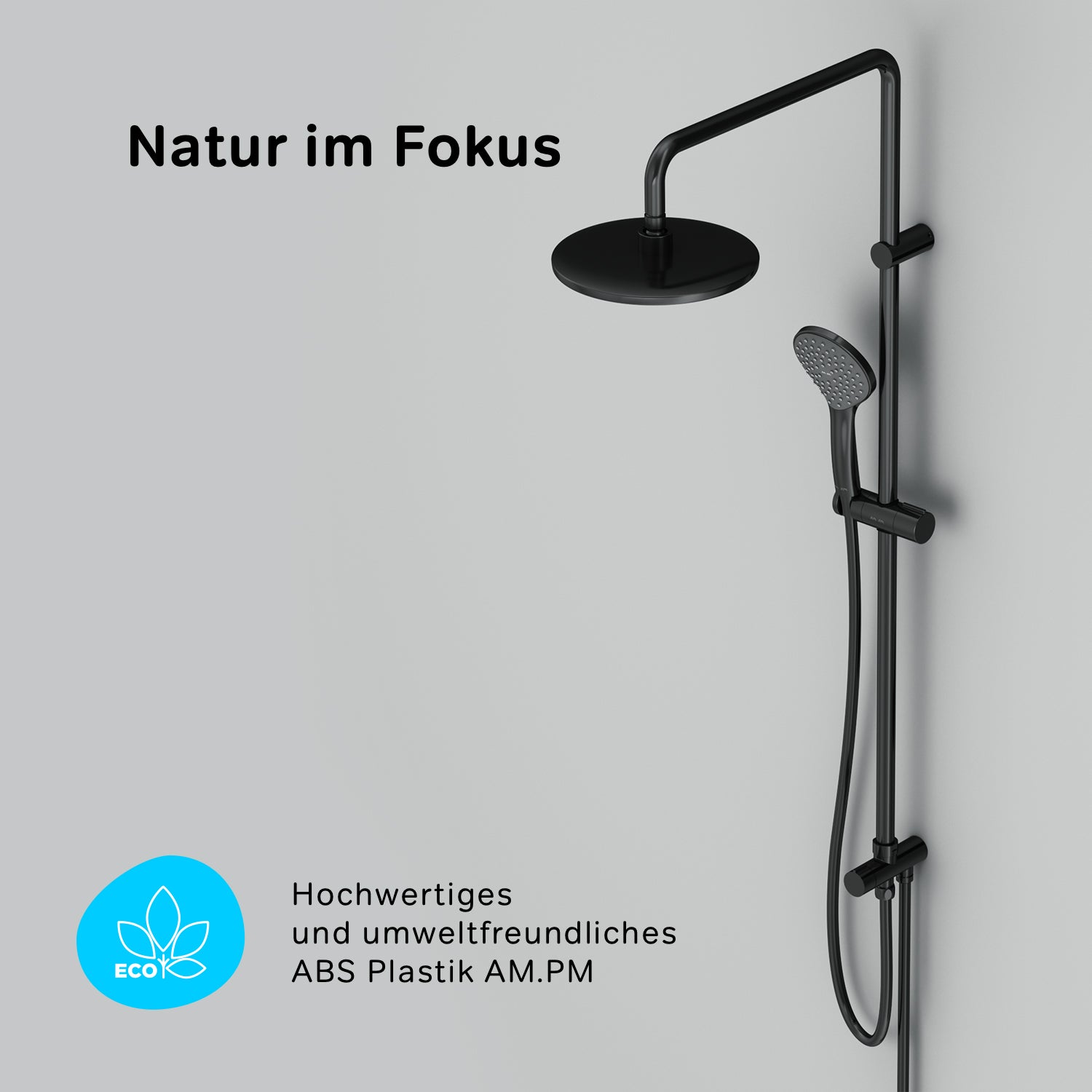 L'ensemble de douche d'AM. PM, disponible dans deux couleurs-chrome brillant et noir mat-est un système élégant et moderne de douche sans des garnitures.