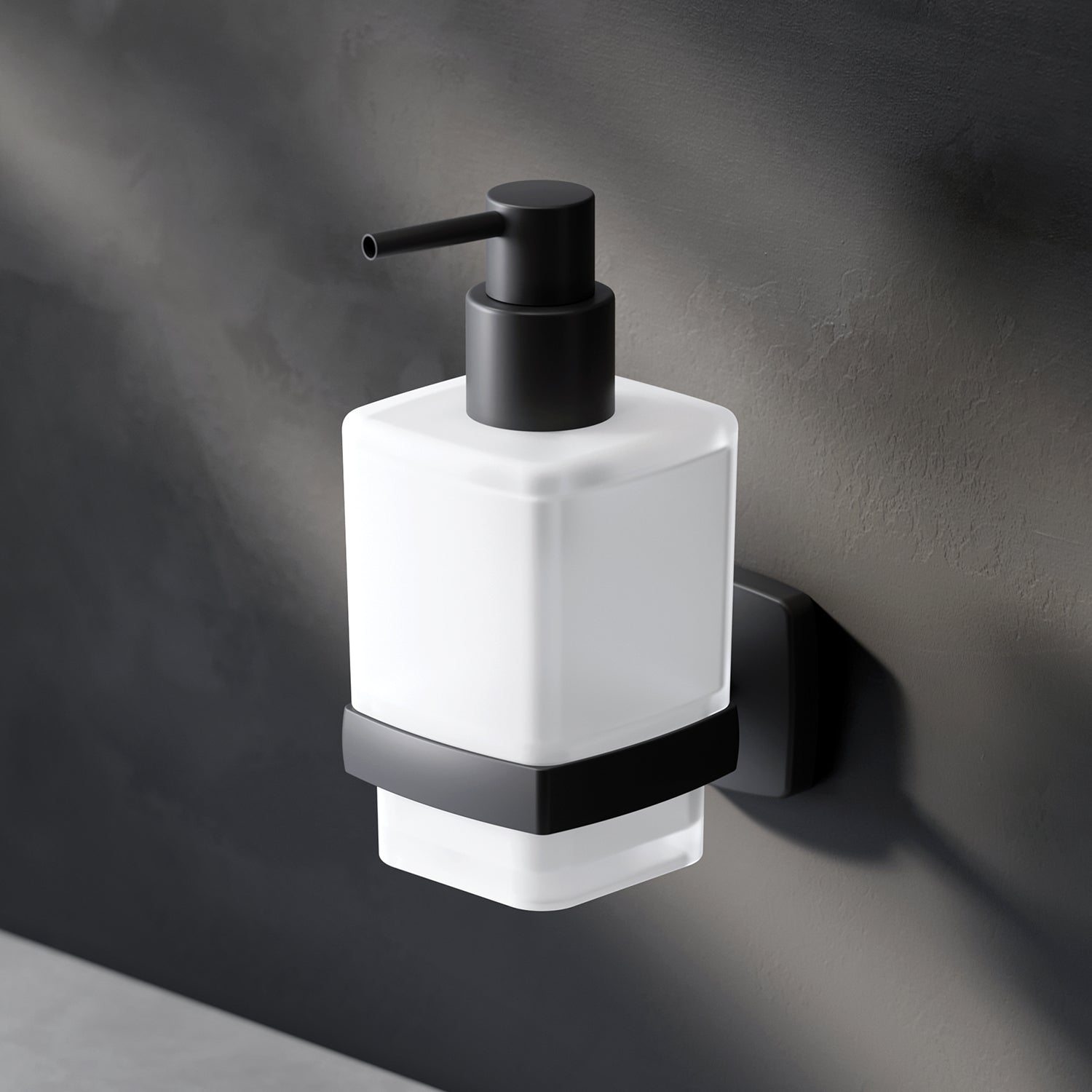 AGA36922 Distributeur de Savon Gem Distributeur de Savon Liquide en Verre avec Support Mural, Noir