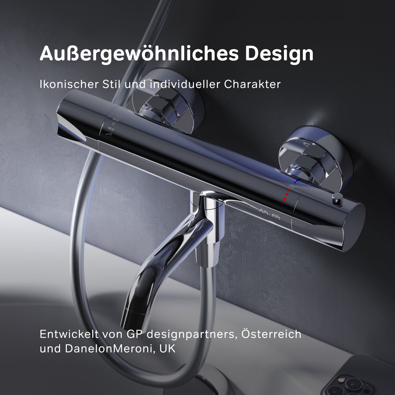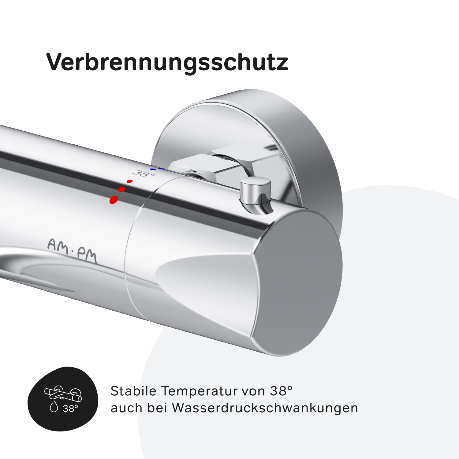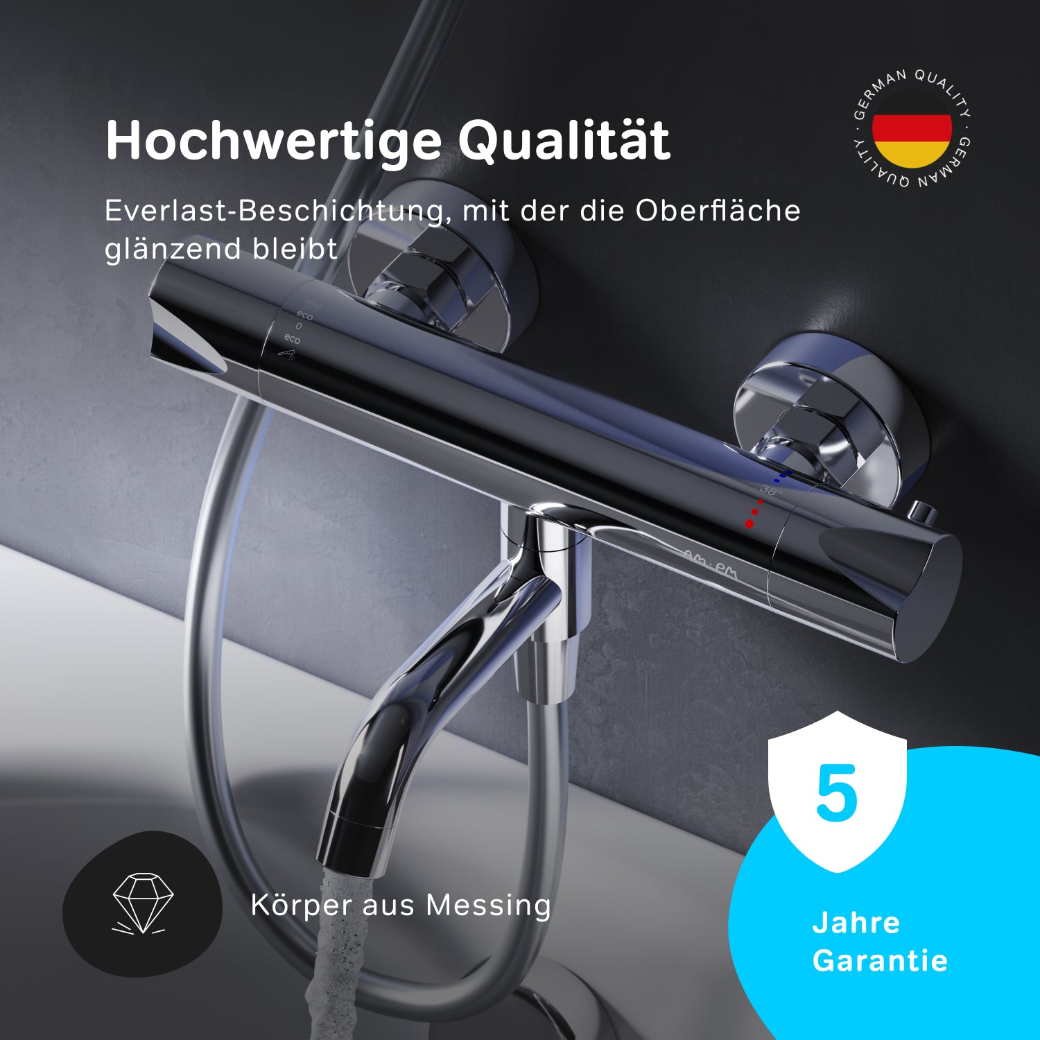 Sécurité maximale : La cartouche thermostatique de 35 mm permet un réglage précis de la température et de la pression de l'eau. Réglez les paramètres qui vous conviennent en tournant simplement la poignée droite du mélangeur. Changez le débit d'eau entre la pomme de douche et le bec en tournant le robinet.