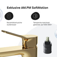 Conformément à la norme SA (Smart Angle) , nous avons développé la géométrie idéale-le rapport hauteur du robinet, la longueur du bec et l'inclinaison du corps du robinet ajustés mathématiquement pour une utilisation pratique sur des éviers de 50 à 120 cm. Le raccord X-Joy est équipé d'une cartouche en céramique SoftMotion de 35 mm, spécialement conçue pour AM.PM a été développé. Cette cartouche permet de contrôler la température et lui permet de résister à toute fluctuation de pression. La surface est également dotée d'un revêtement Everlast. Il s'agit de la norme industrielle en matière de durabilité et de longévité.
