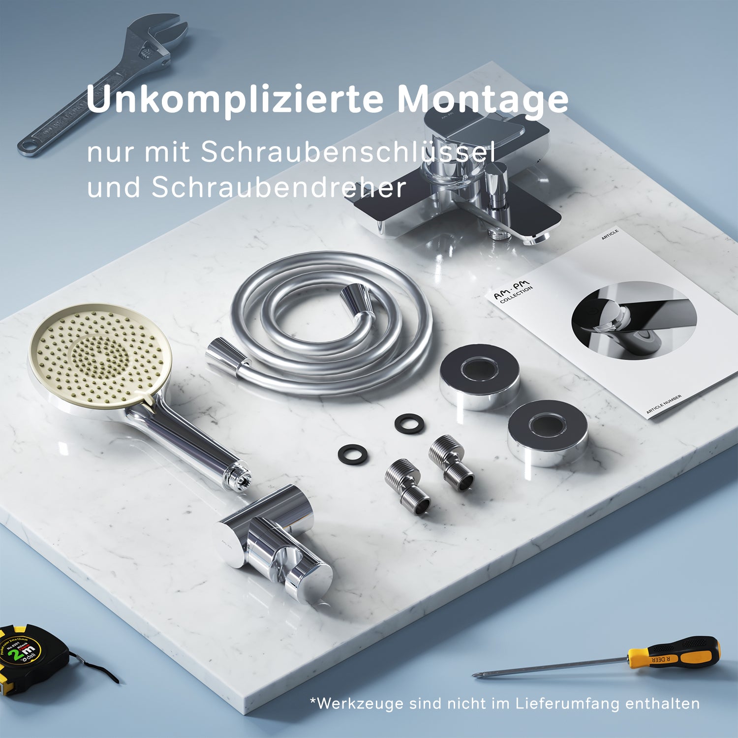 Robinet de baignoire à économie d'eau, robinet de baignoire en chrome, mitigeur monocommande pour salle de bain, robinet argenté avec bec, douchette, support mural et flexible inclus, robinet pour baignoire et ensemble de douche, poli. LONGUE DUREE : La surface chromée protège de la corrosion, des rayures et de la saleté.