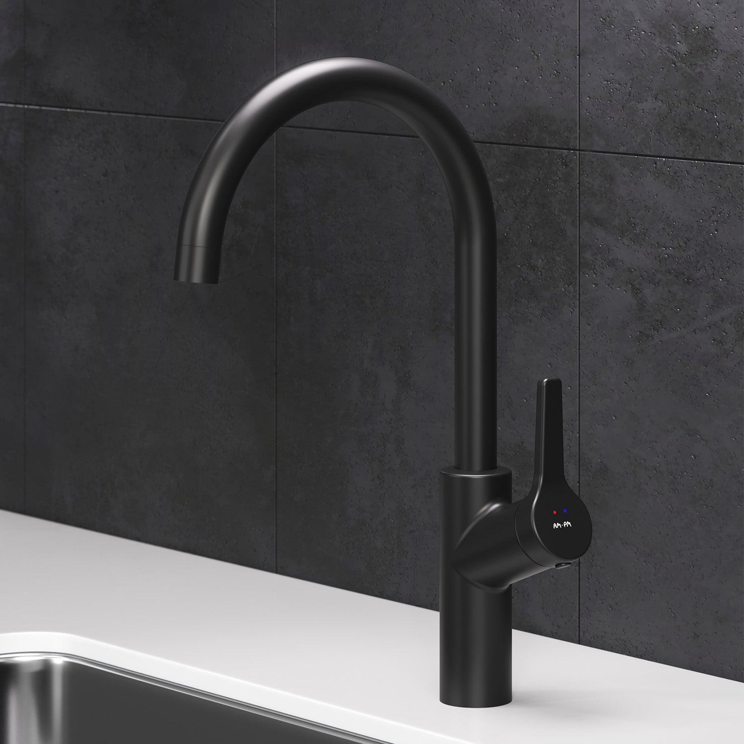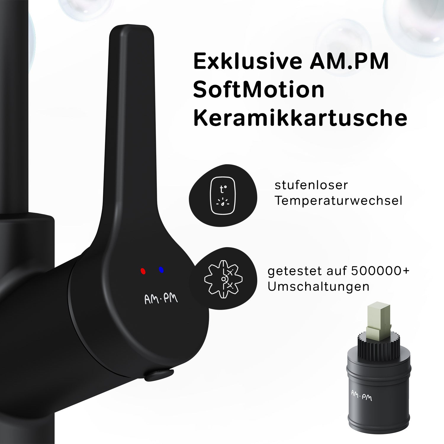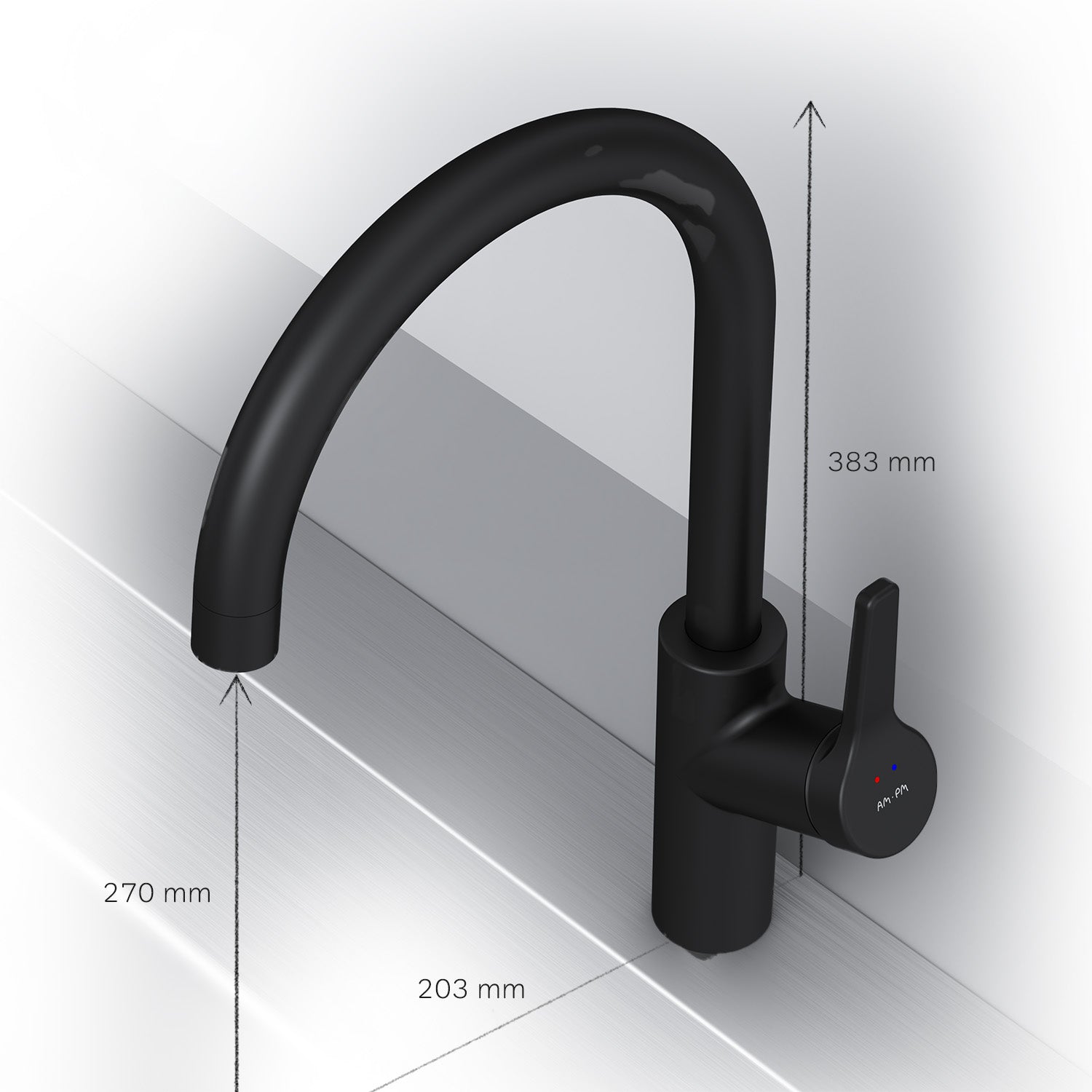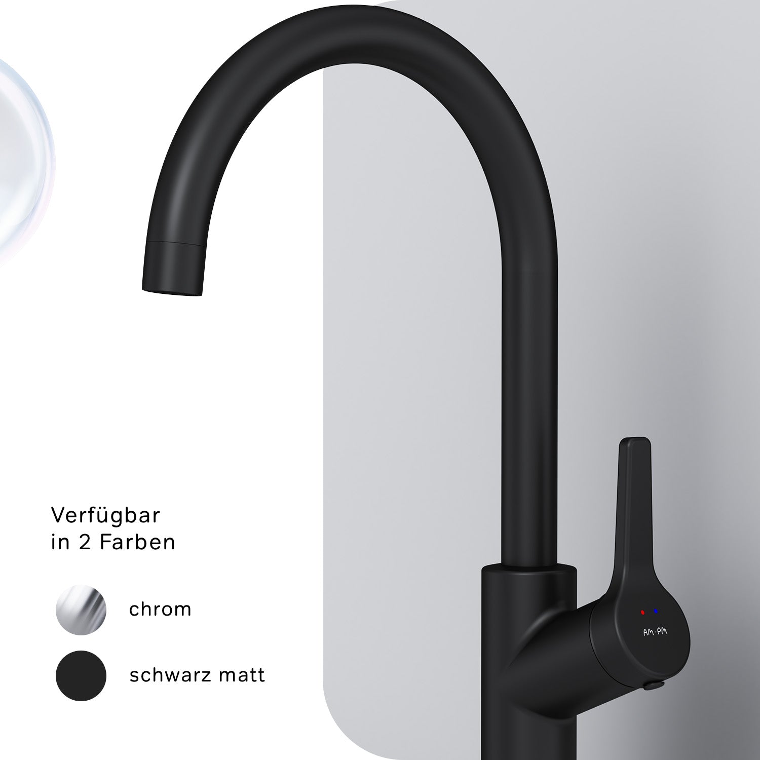 Contenu de la livraison: 1x robinet de cuisine AM.PM avec mélangeur à levier unique en noir, 1x instructions (allemand, anglais, danois).