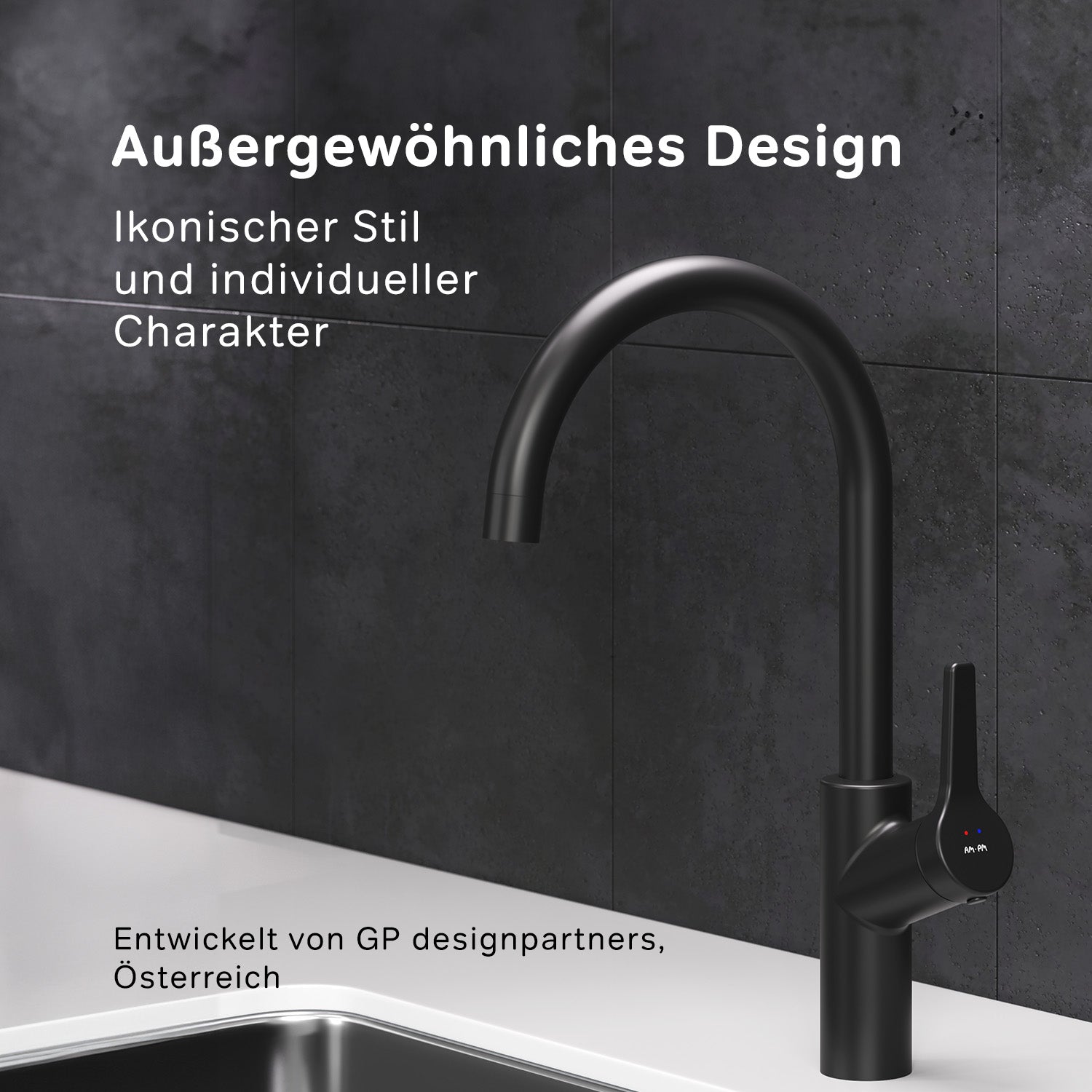 Design: Un produit design élégant avec un rapport adapté entre la hauteur du robinet, la longueur du bec et l'inclinaison du tableau de bord pour une utilisation facile depuis l'évier-un véritable accroche-regard dans chaque cuisine.