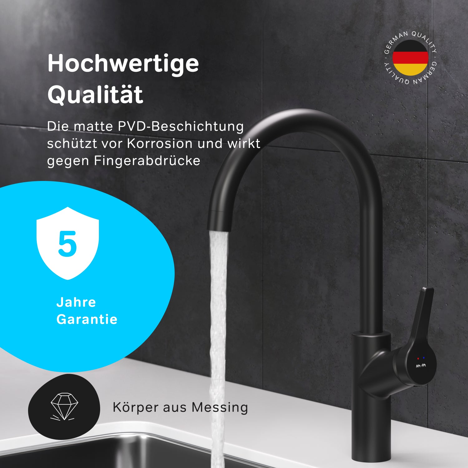 FXB07022 Robinet de cuisine X-Joy S Cuisine Table de rinçage à levier unique, Noir