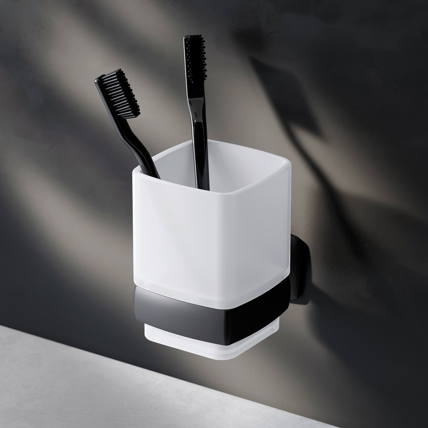 AGA34322 Porte-brosse à dents Gobelet à brosse à dents Gem avec support mural, noir