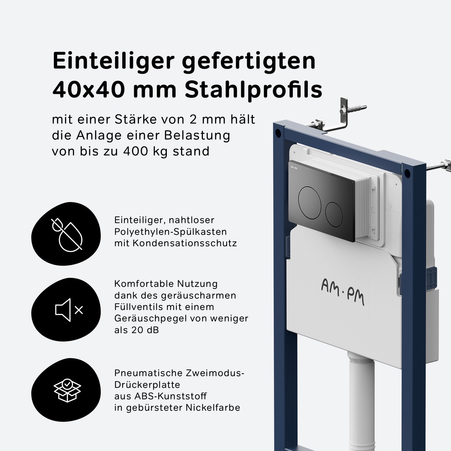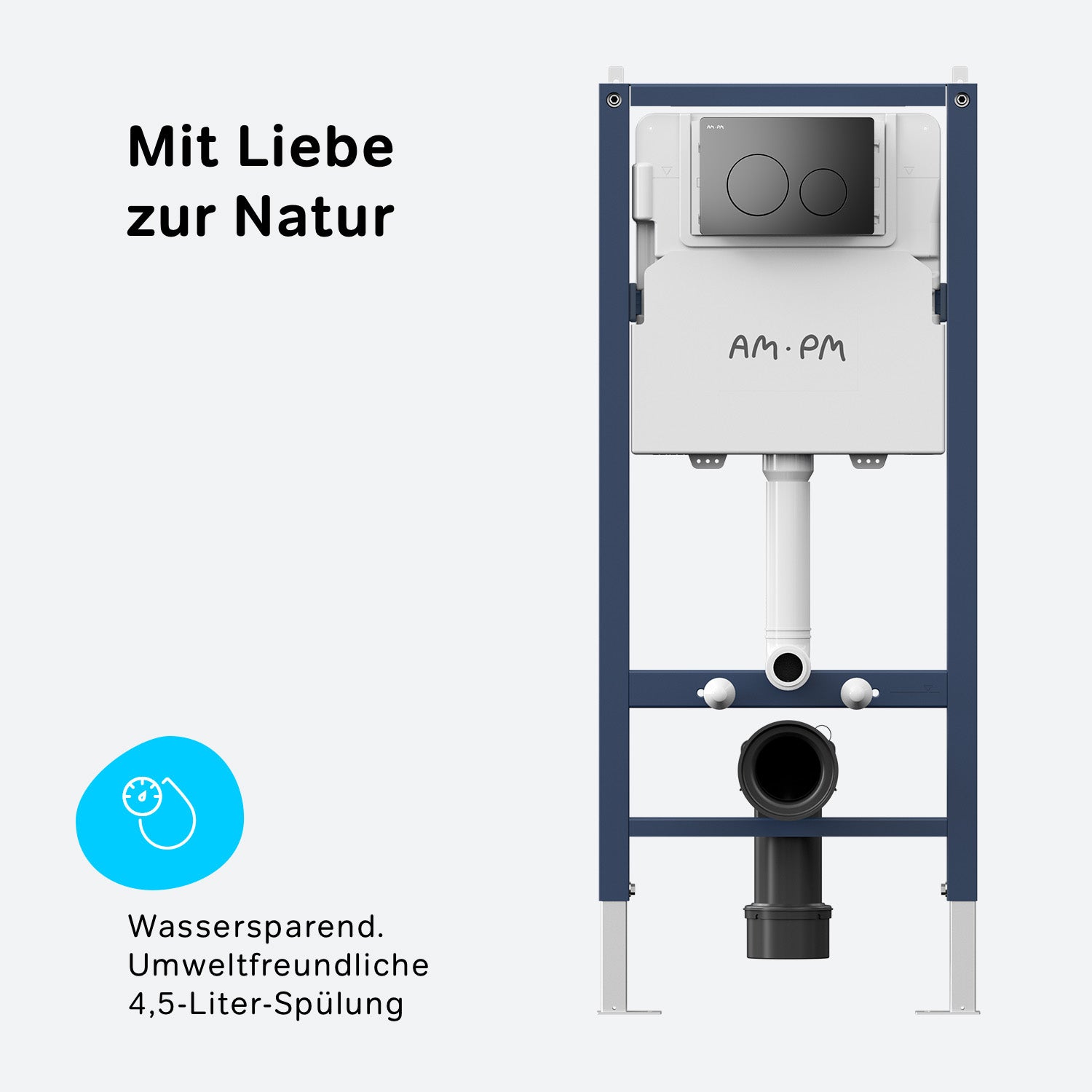 L'ensemble IIS90138. XB1700MB offre une combinaison de WC suspendu (CXB1700MBSC) avec mécanisme d'abaissement automatique à fermeture en douceur, élément pré-mural AM. PM II12709 comprenant une plaque de poussée II90138. Cette combinaison offre une solution minimaliste et hygiénique pour toute salle de bain moderne.