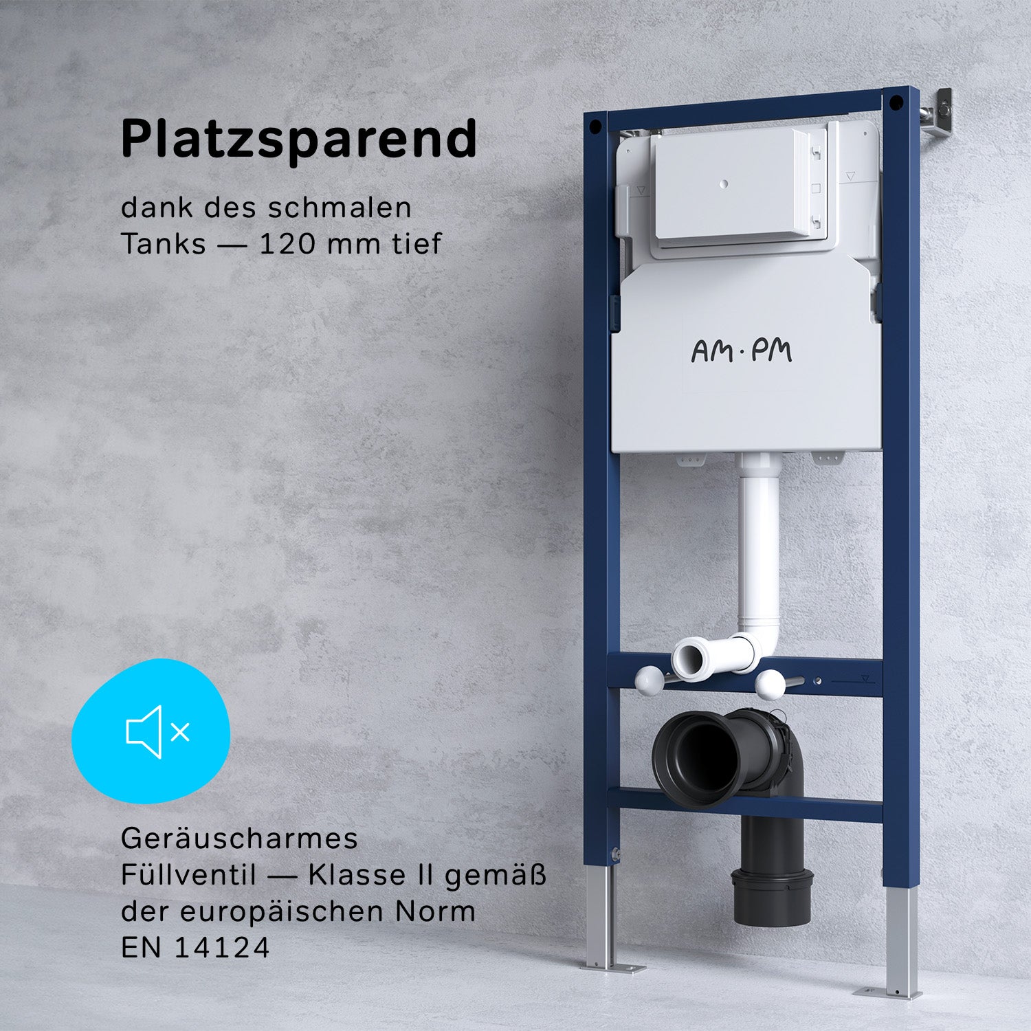 L'ensemble IIS90151. PA1900 offre une combinaison de WC suspendu (CPA1900SC) avec mécanisme d'abaissement automatique à fermeture en douceur, élément pré-mural AM. PM II12709 comprenant une plaque de poussée II90151 (chrome) . Cette combinaison offre une solution minimaliste et hygiénique pour toute salle de bain moderne.