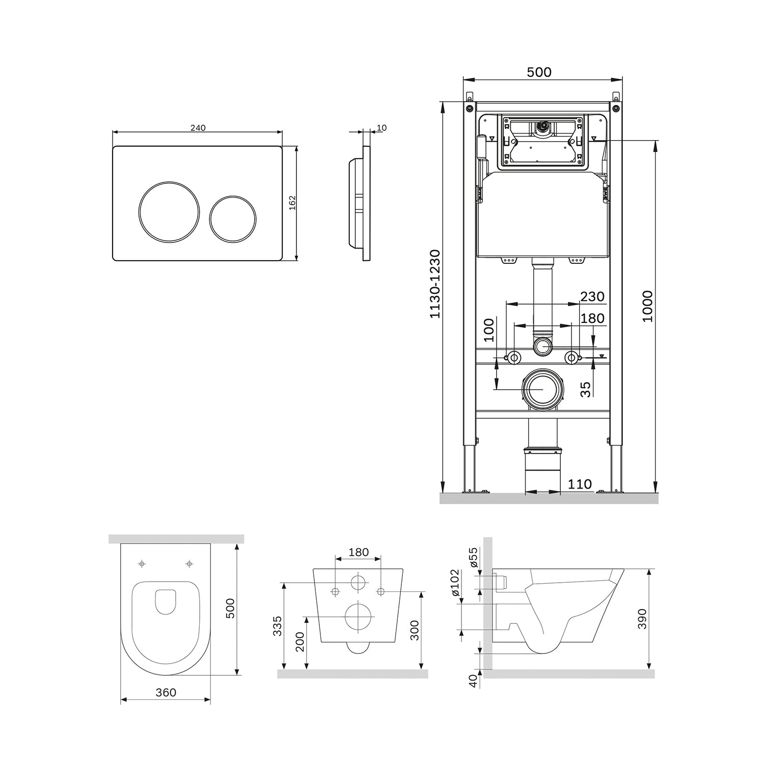 IIS90151.PA1900 Set: Plaque de poussoir pour élément de préparoi de toilette mural