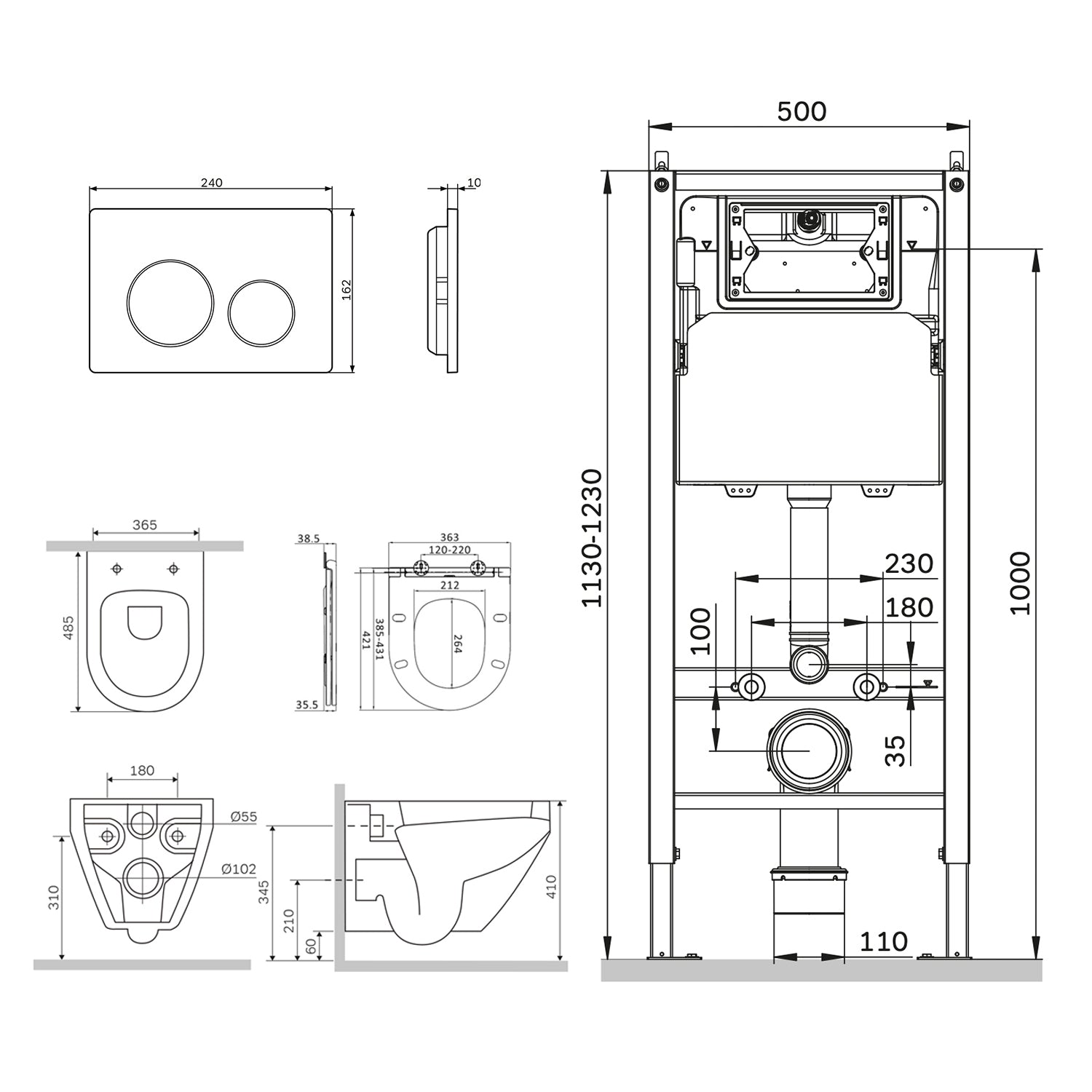 IIS90151.SB1700 Set: Plaque de poussée pour élément de préparoi de toilette mural