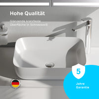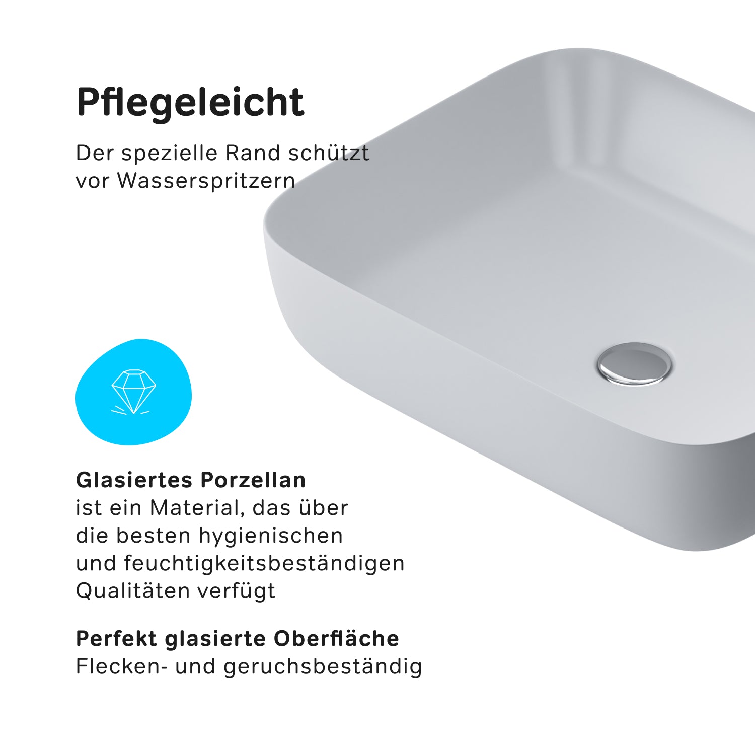 Le lavabo est fabriqué en porcelaine sanitaire, le matériau le plus hygiénique et le plus résistant à l'humidité.