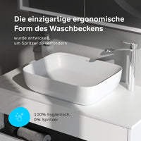 Avec une taille de seulement 51 cm, le lavabo s'intègre parfaitement même dans les petites salles de bains. La forme bien pensée empêche l'eau de déborder et maintient la surface propre, réduisant ainsi le temps de nettoyage.