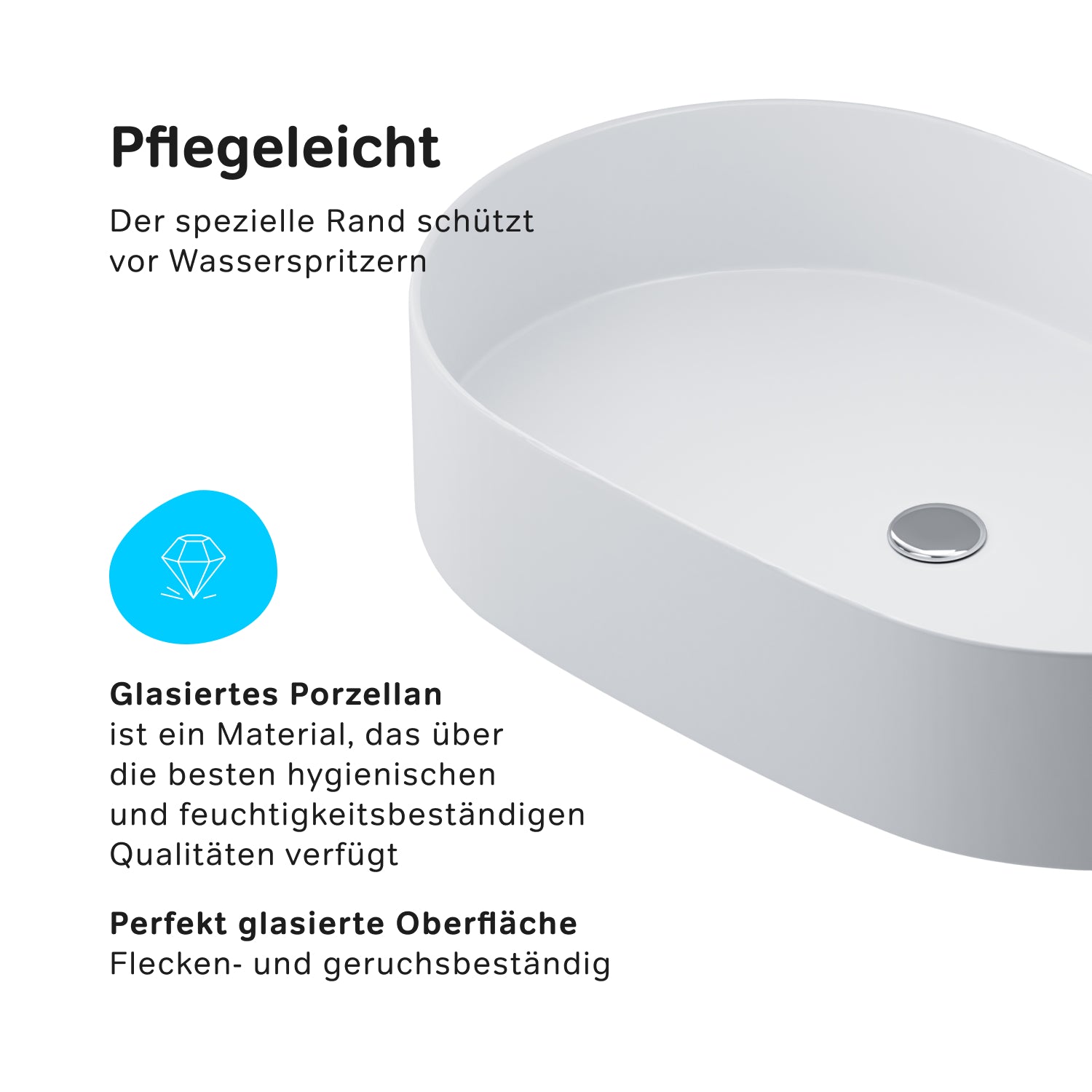 Le lavabo est fabriqué en porcelaine sanitaire, le matériau le plus hygiénique et le plus résistant à l'humidité.