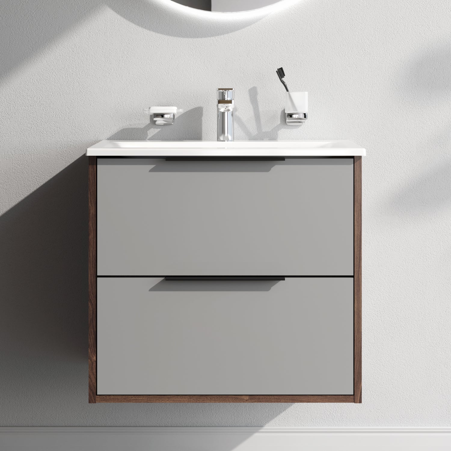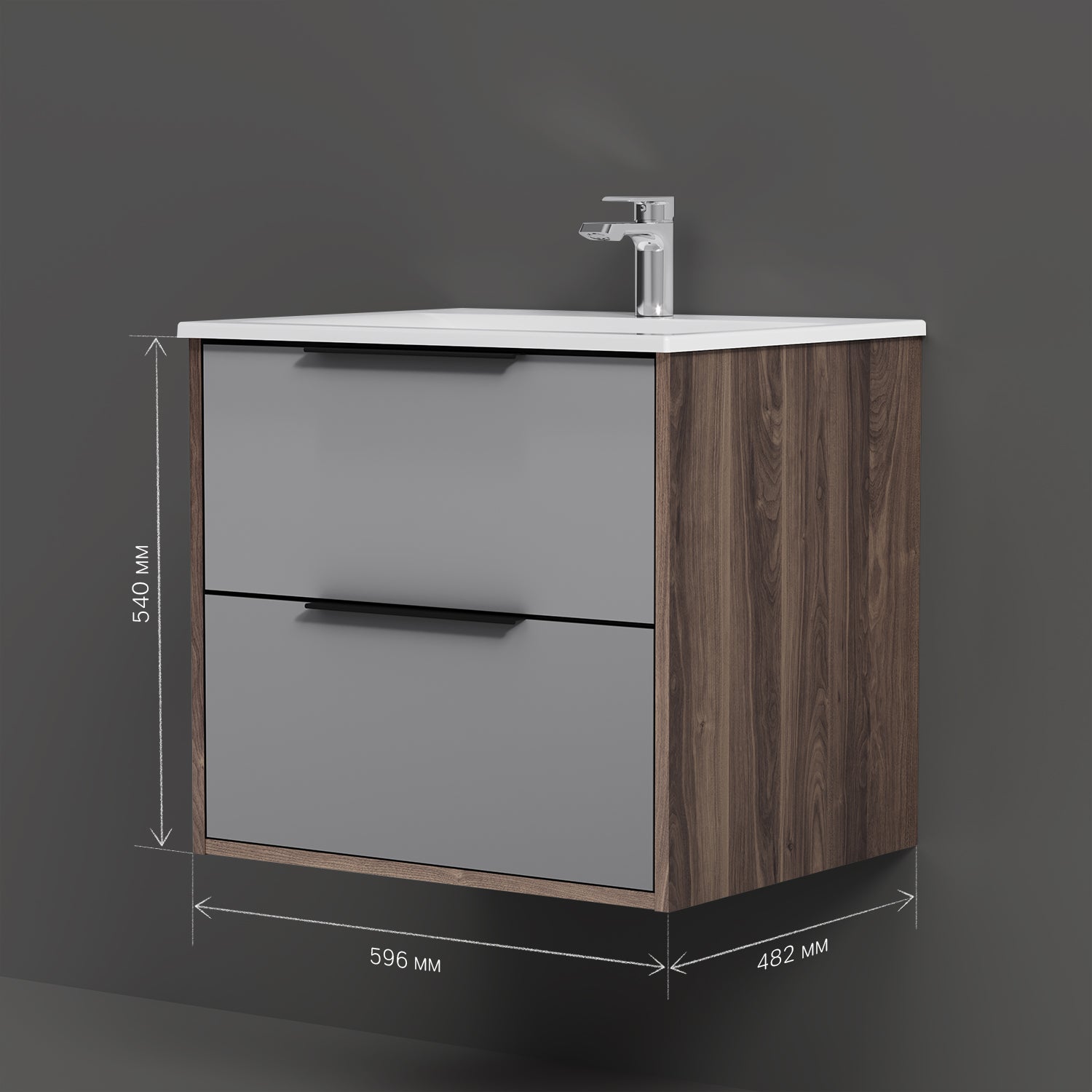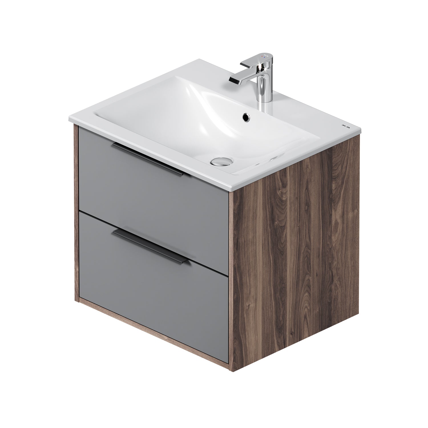 Meuble vasque MNA-FHX0602GM-WCC0602WG avec vasque, 60 cm, 2 tiroirs, graphite mat
