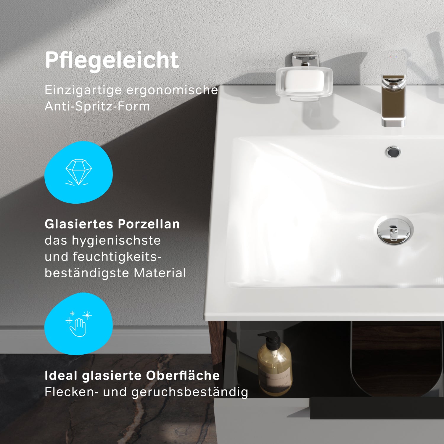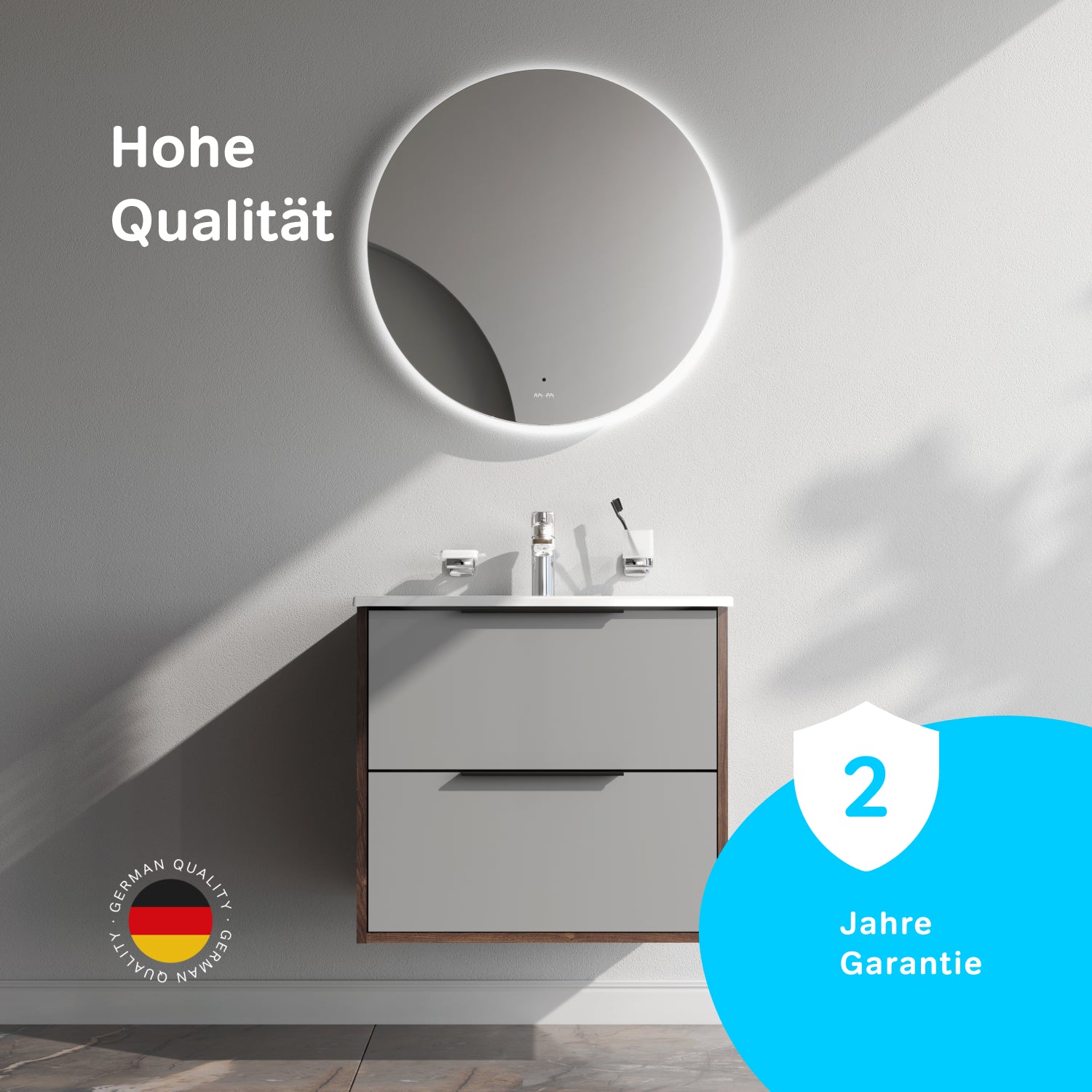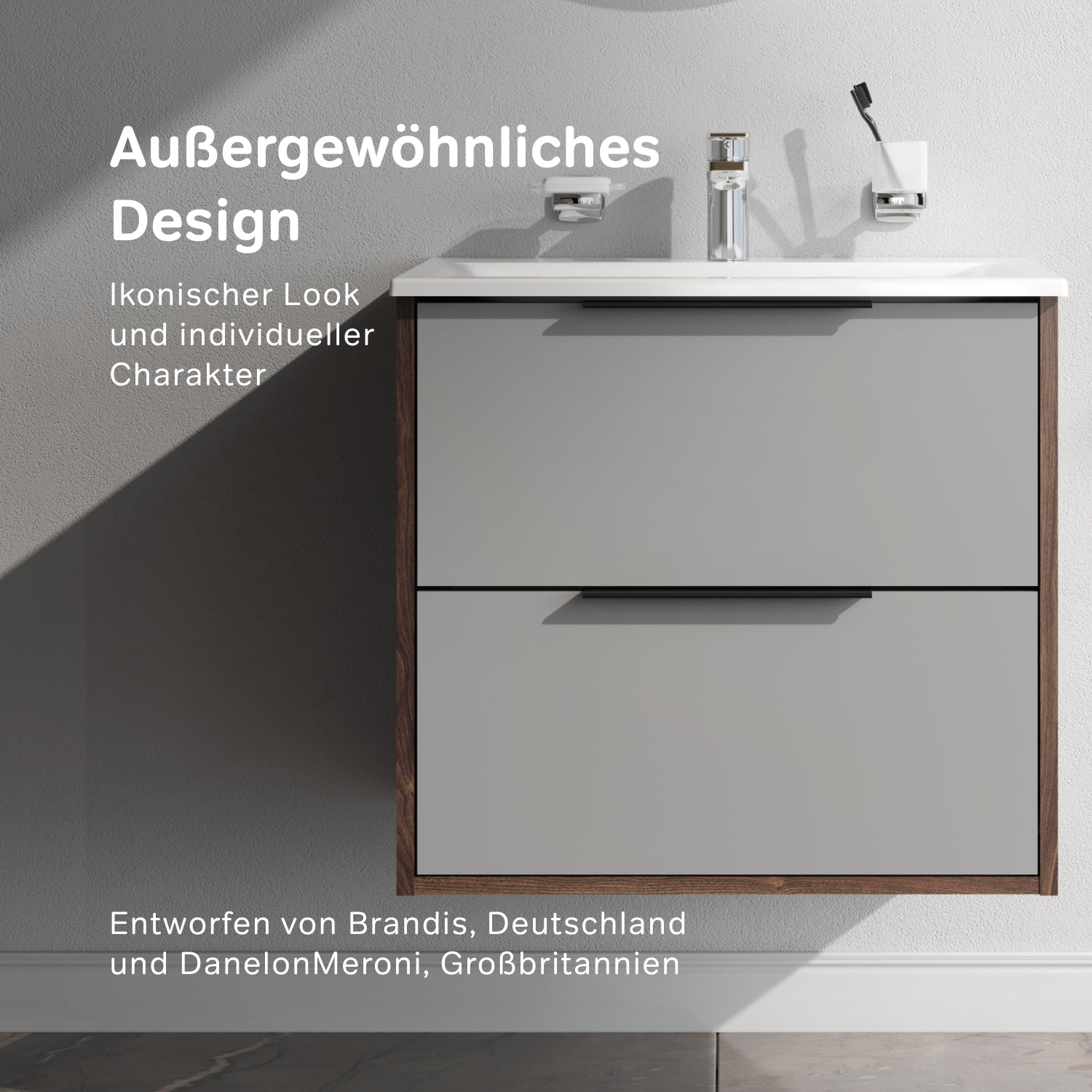 Meuble vasque MNA-FHX0602GM-WCC0602WG avec vasque, 60 cm, 2 tiroirs, graphite mat