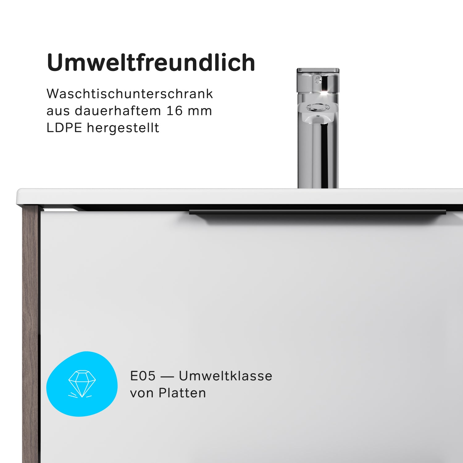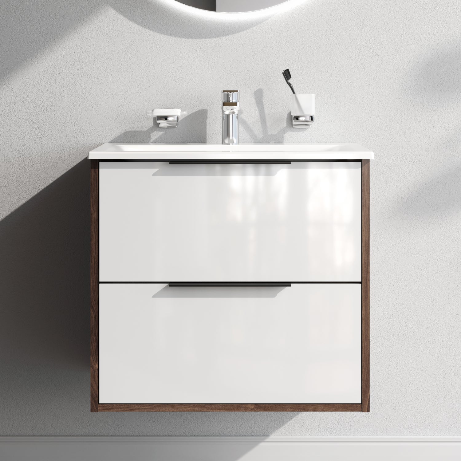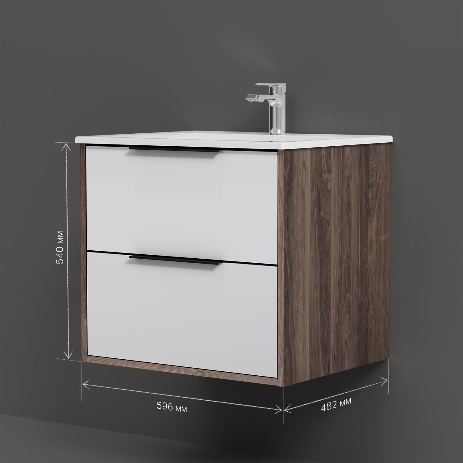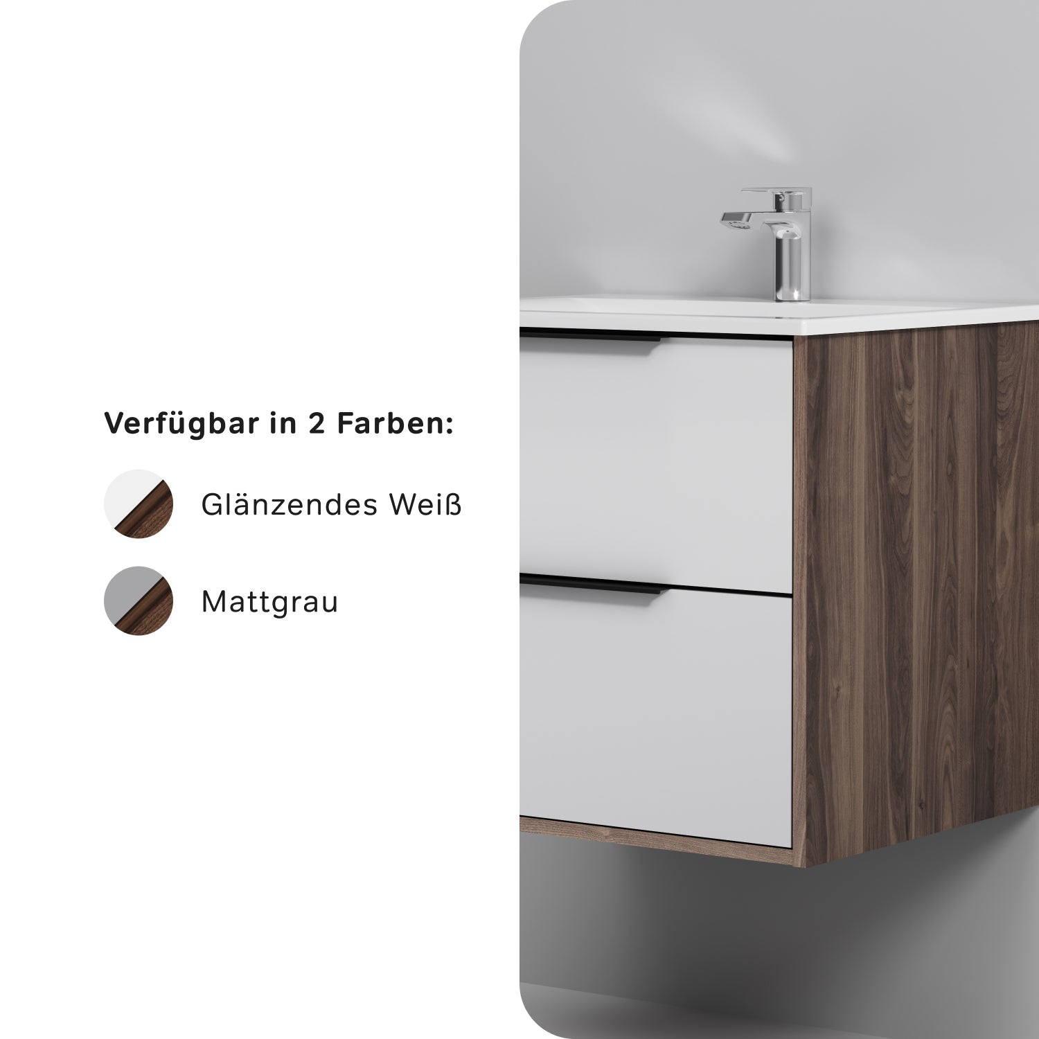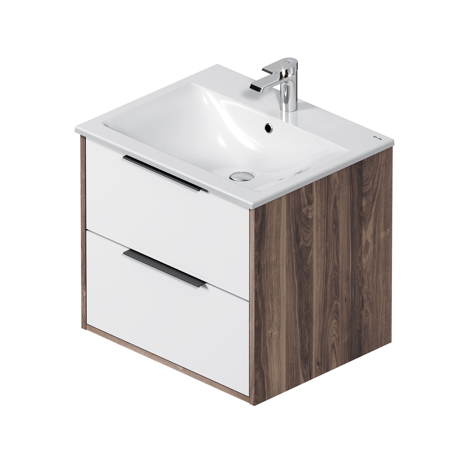 MNA-FHX0602WG-WCC0602WG Meuble lavabo lavabo, 60 cm, 2 tiroirs, blanc brillant