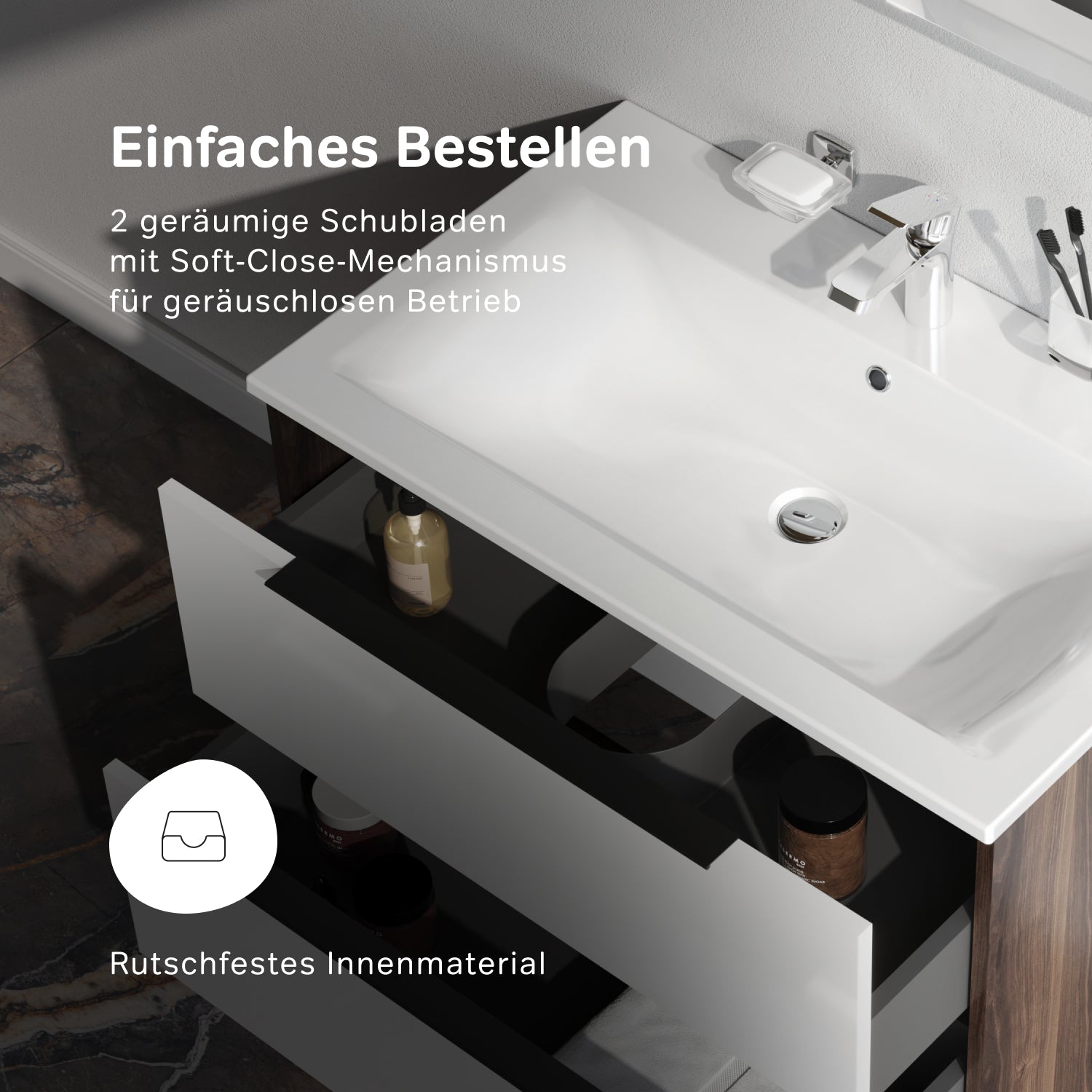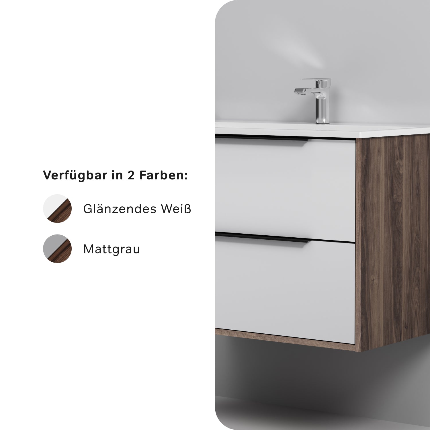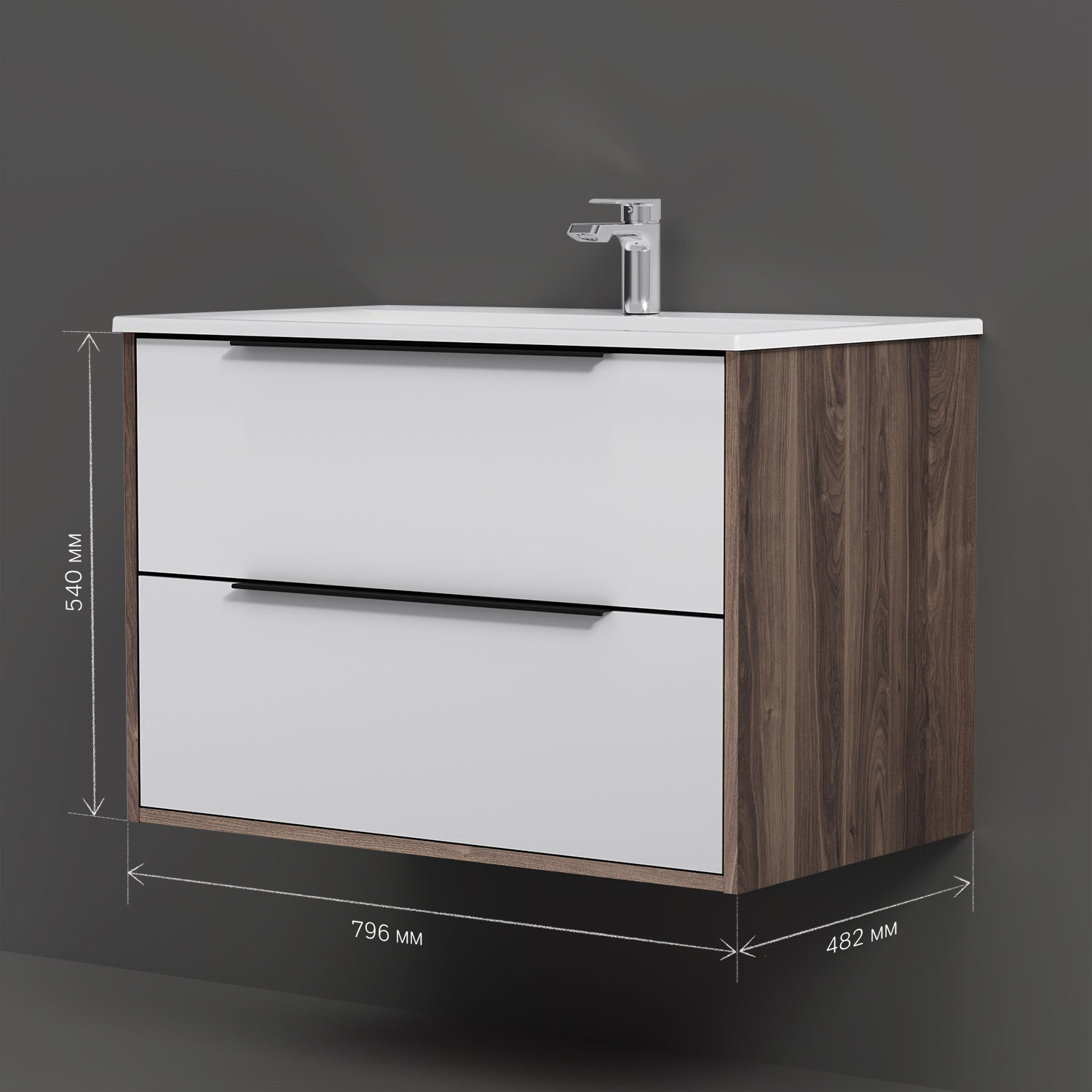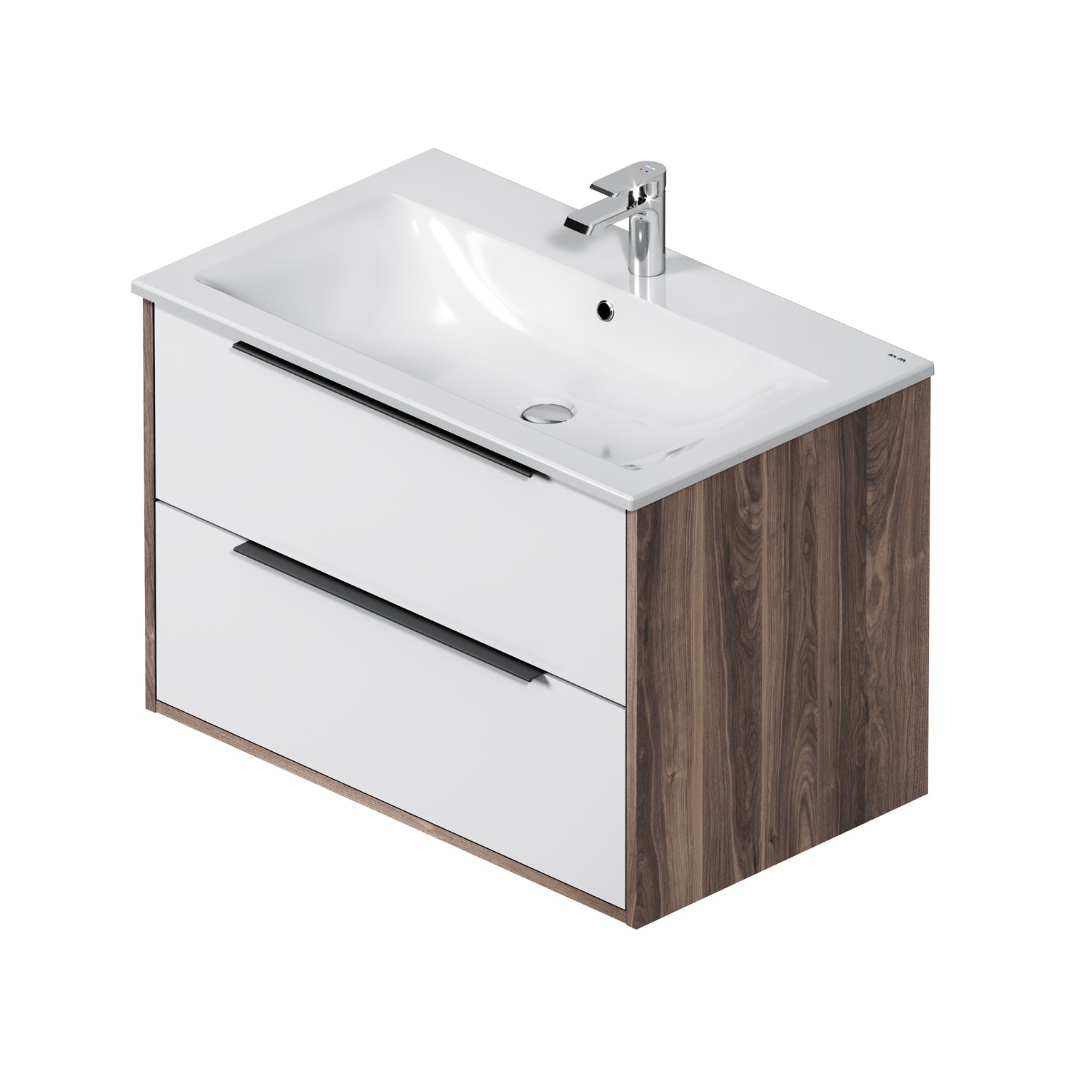 Meuble vasque MNA-FHX0802WG-WCC0802WG avec vasque, 80 cm, 2 tiroirs, blanc brillant