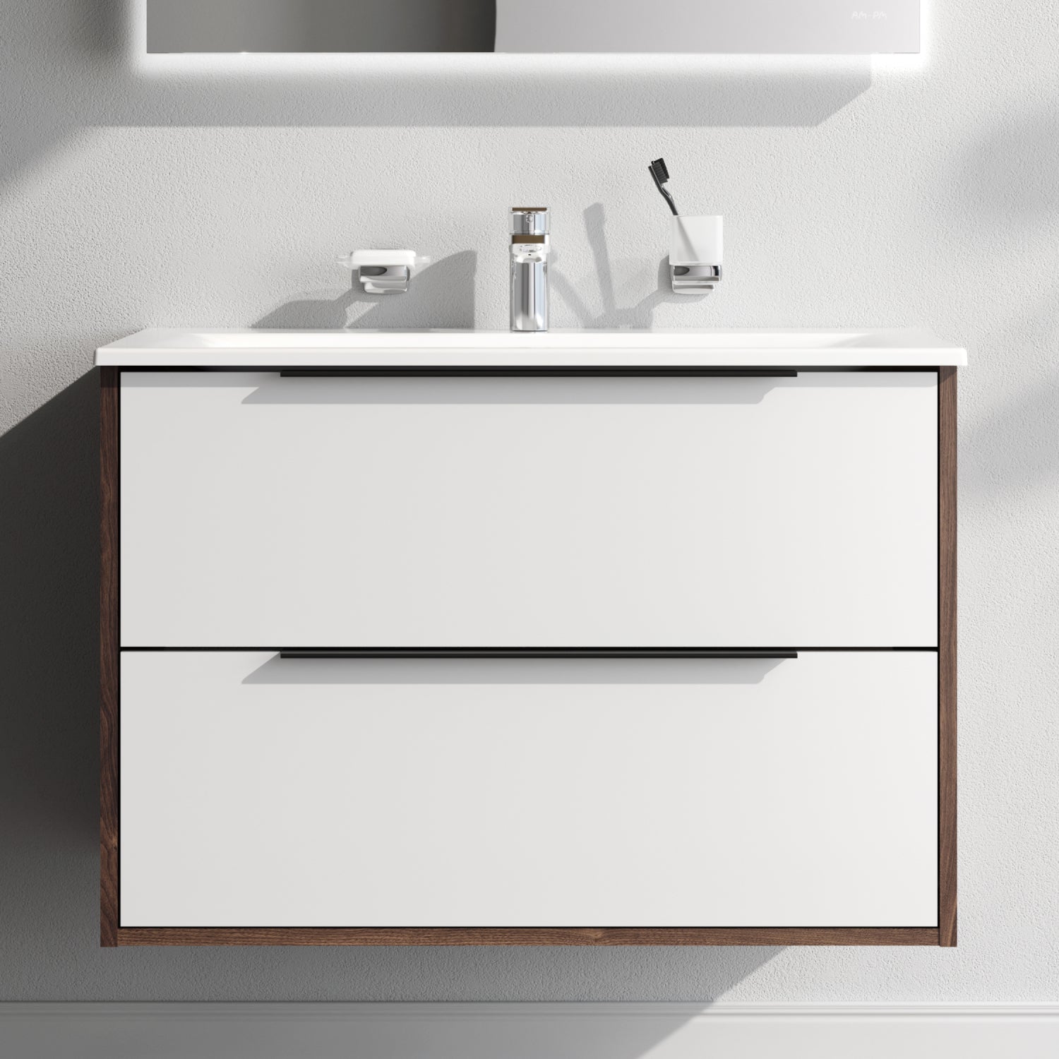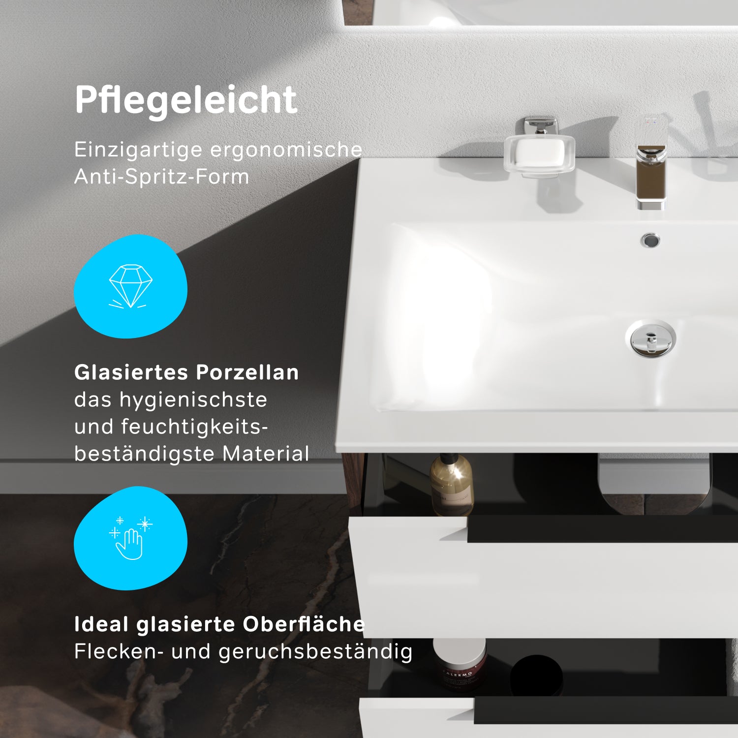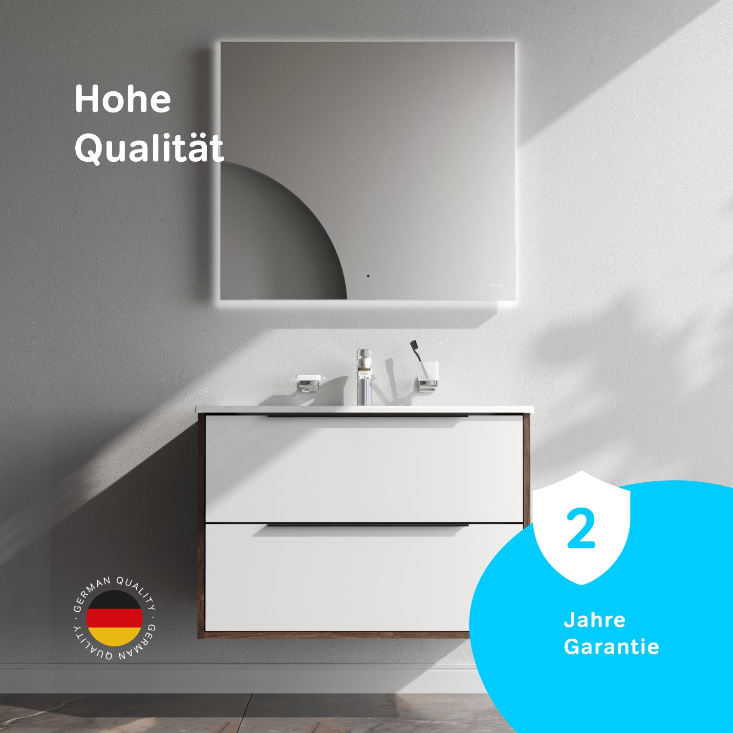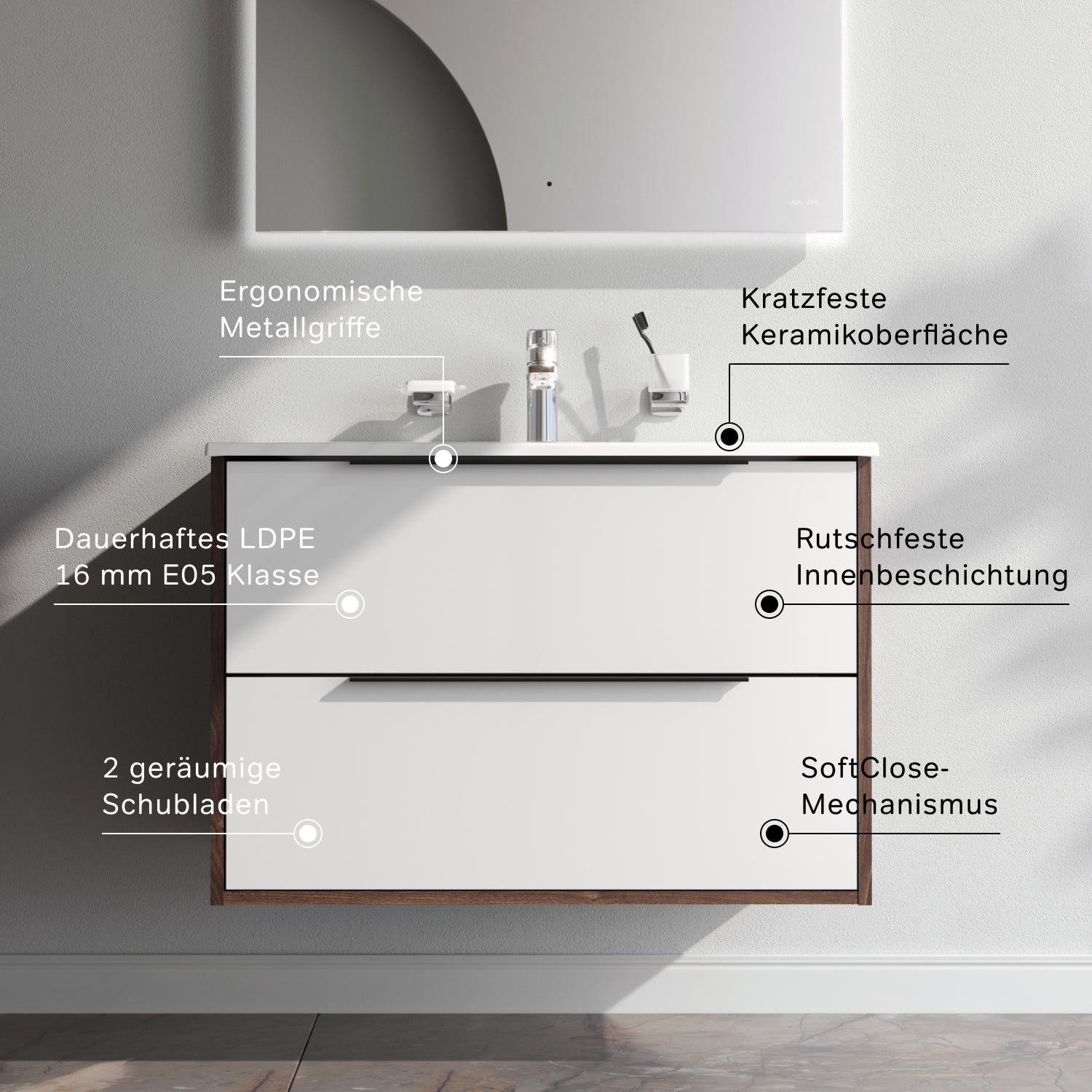 Meuble vasque MNA-FHX0802WG-WCC0802WG avec vasque, 80 cm, 2 tiroirs, blanc brillant