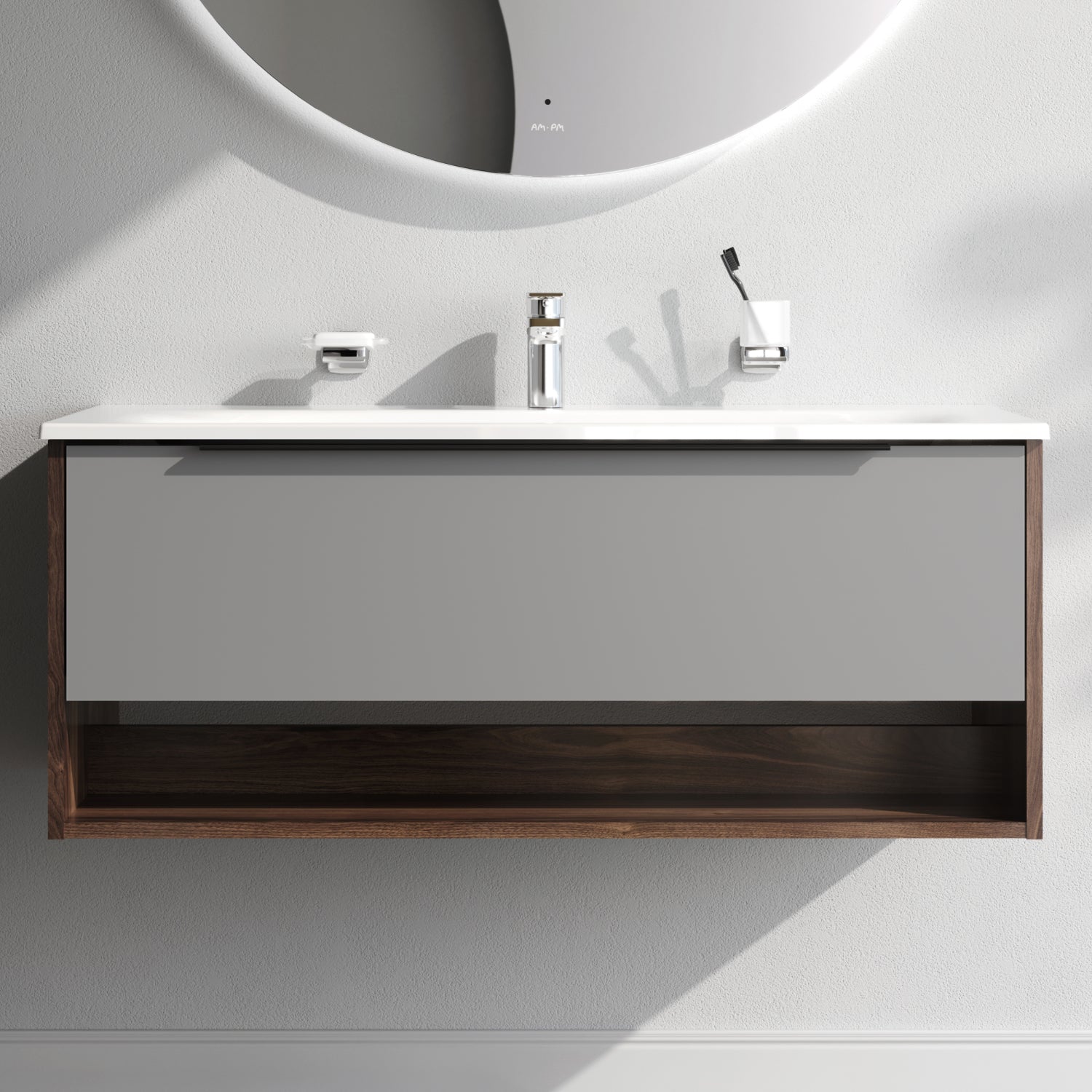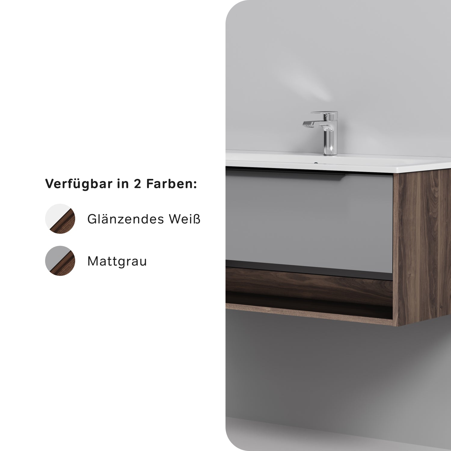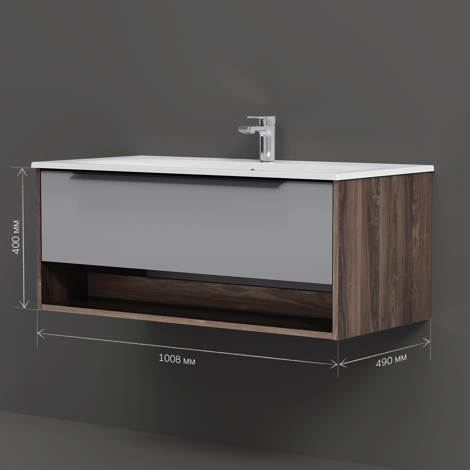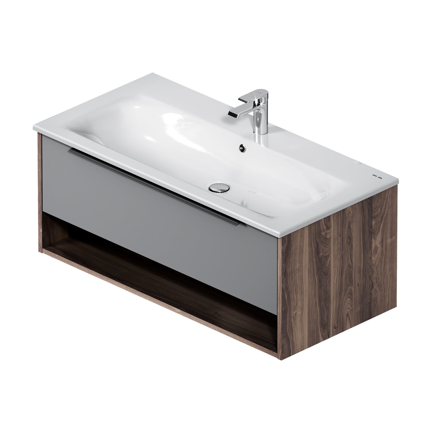 MNA-FHX1001GM-WCC1002WG 100 cm 1 tiroir ouvert niche graphite mat vanité armoire avec bassin
