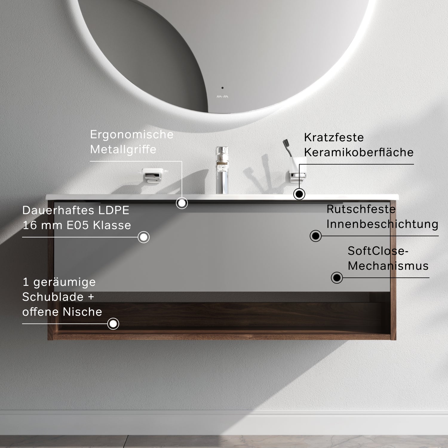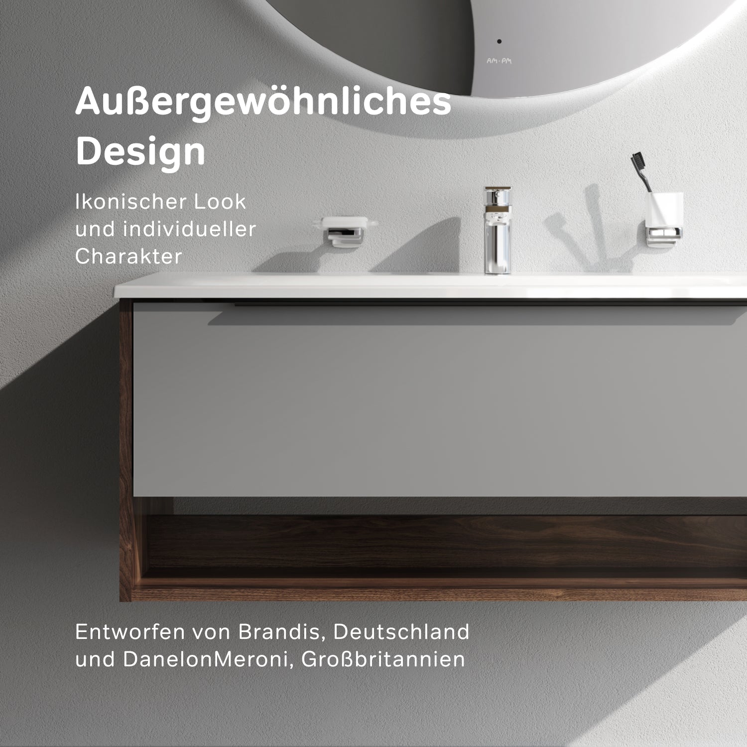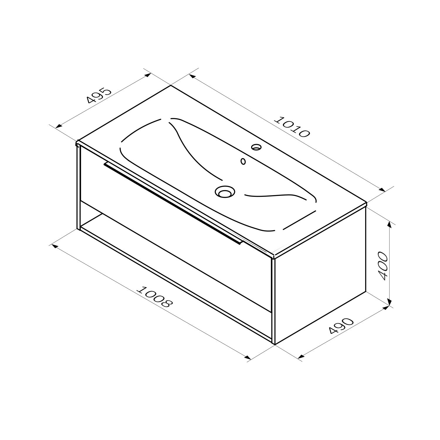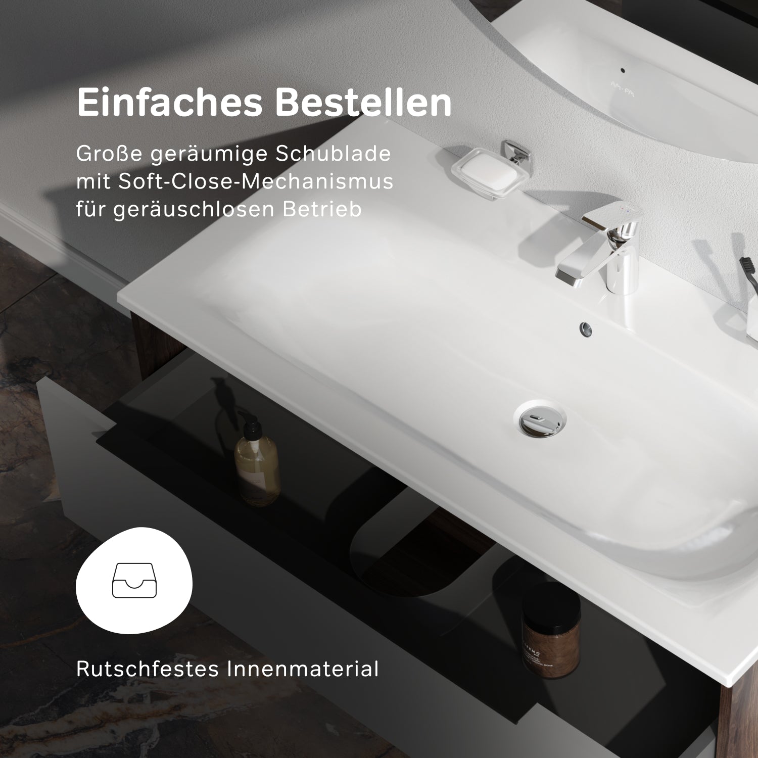 MNA-FHX1001GM-WCC1002WG 100 cm 1 tiroir ouvert niche graphite mat vanité armoire avec bassin
