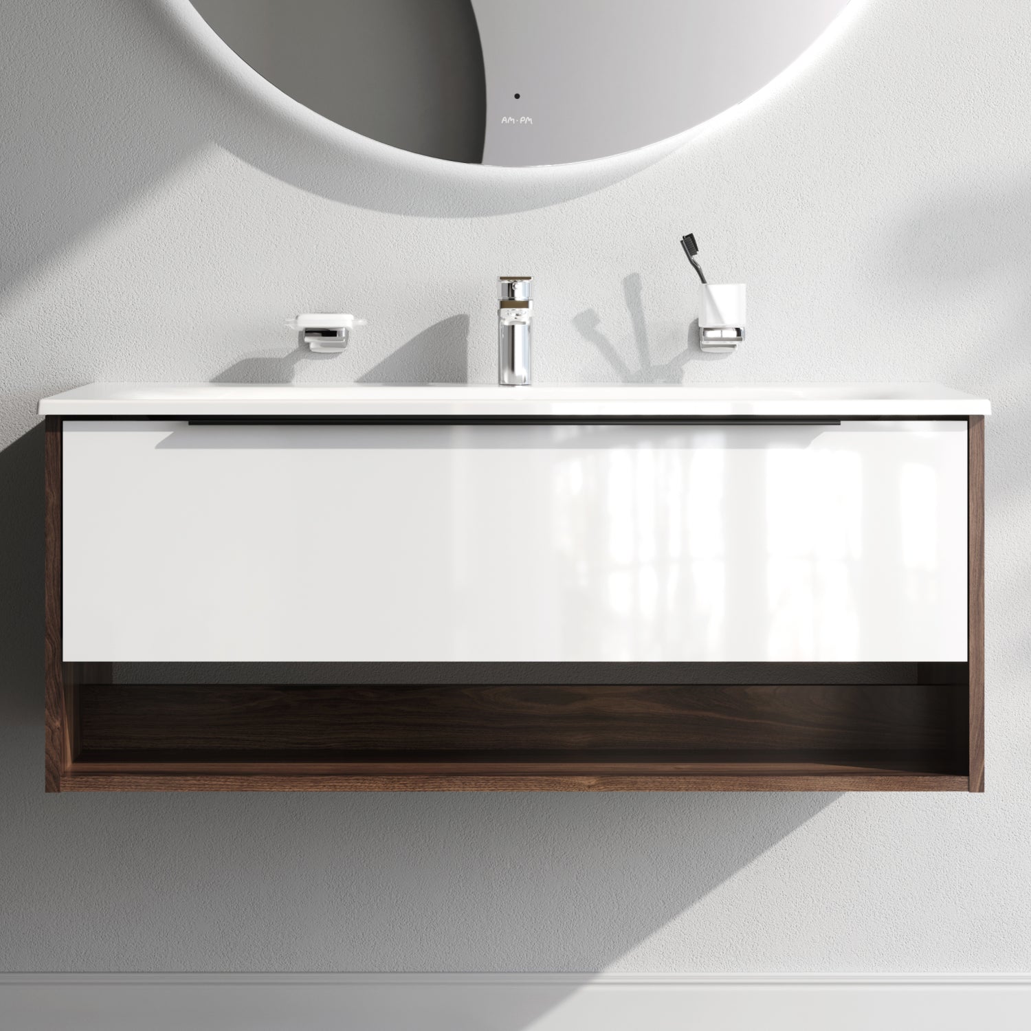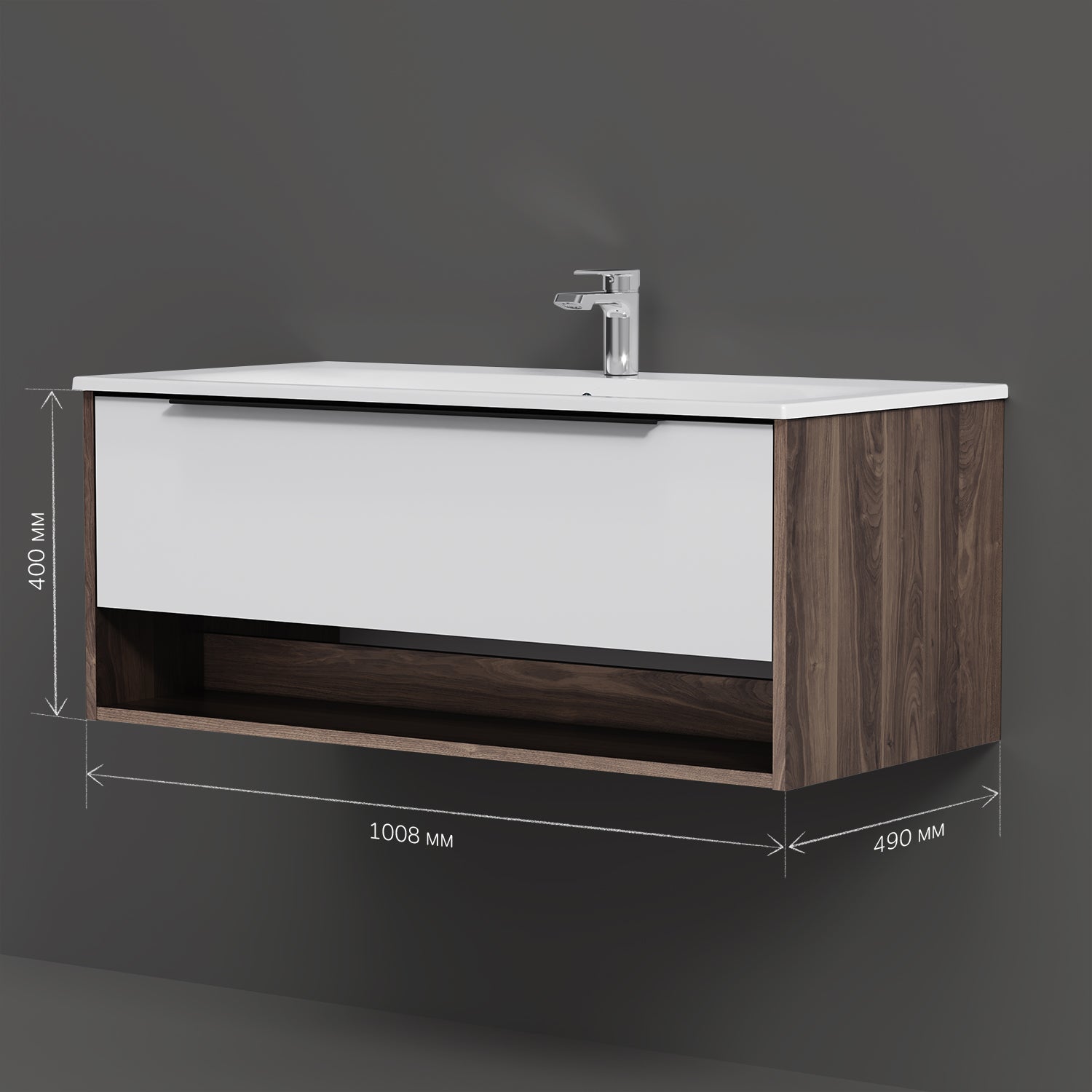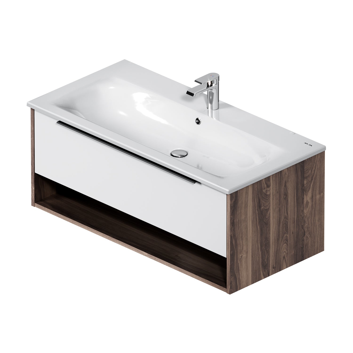 MNA-FHX1001WG-WCC1002WG 100 cm 1 tiroir ouvert niche blanc brillant meuble avec lavabo