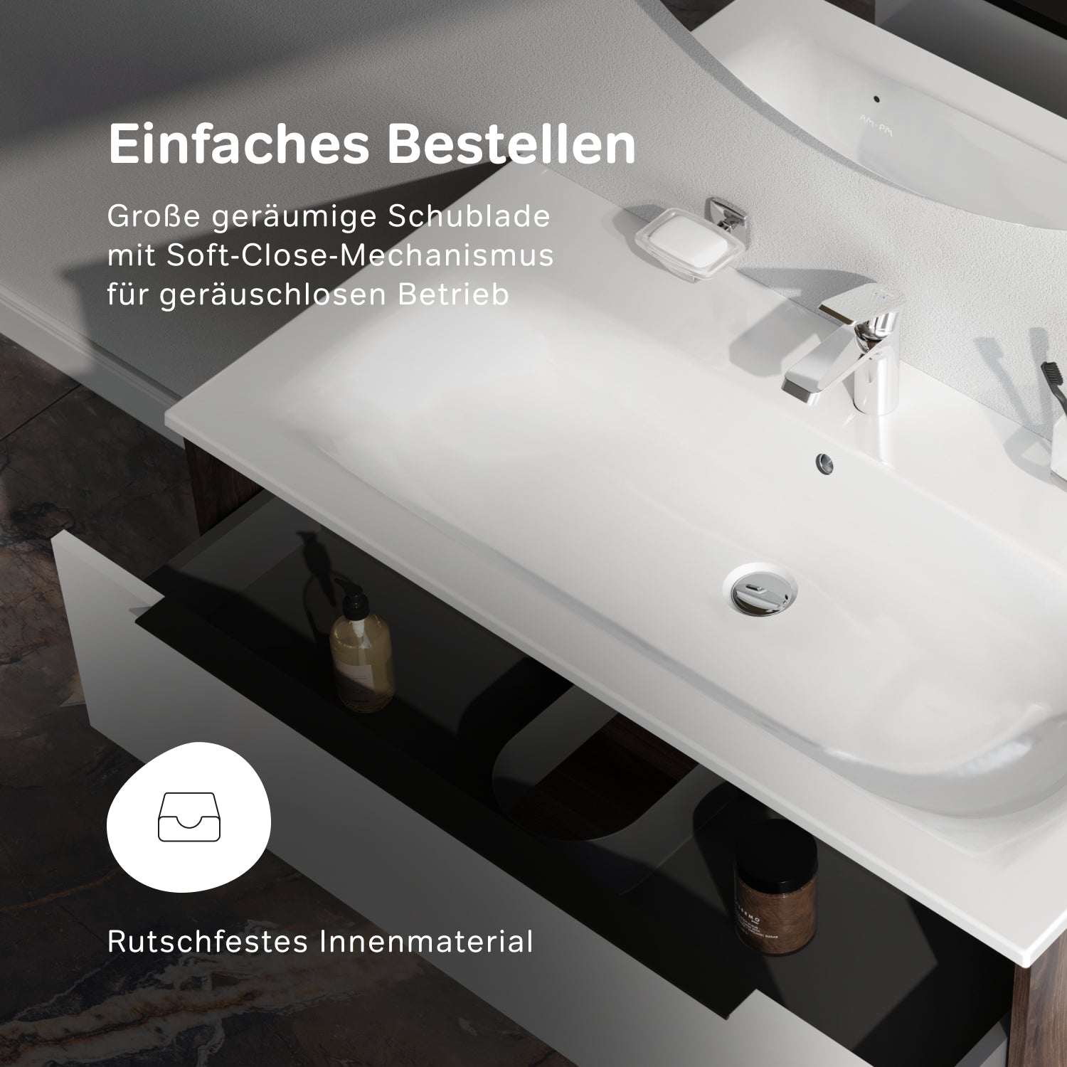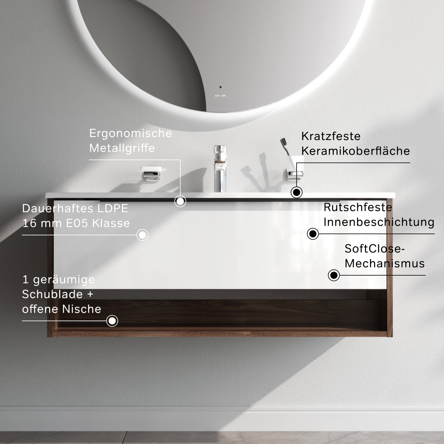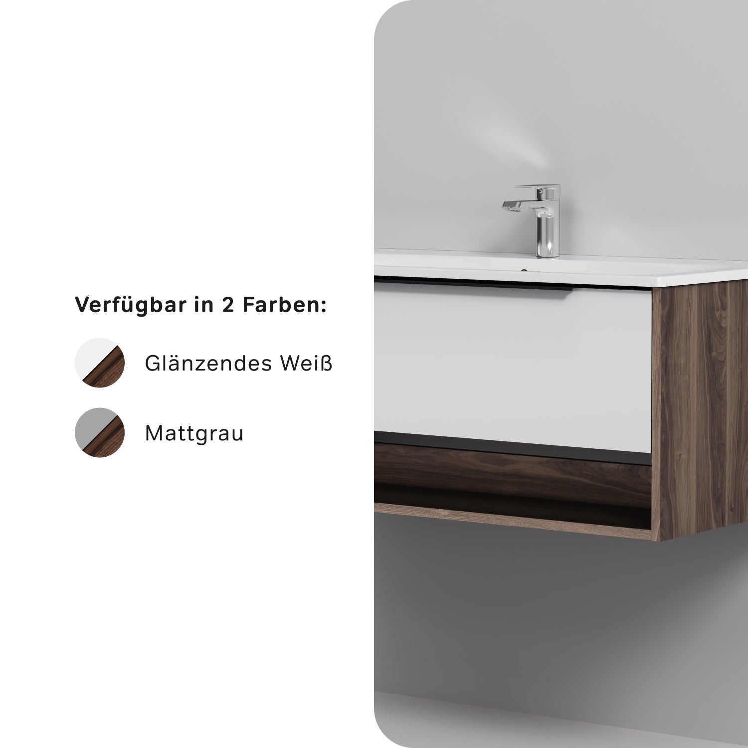MNA-FHX1001WG-WCC1002WG 100 cm 1 tiroir ouvert niche blanc brillant meuble avec lavabo