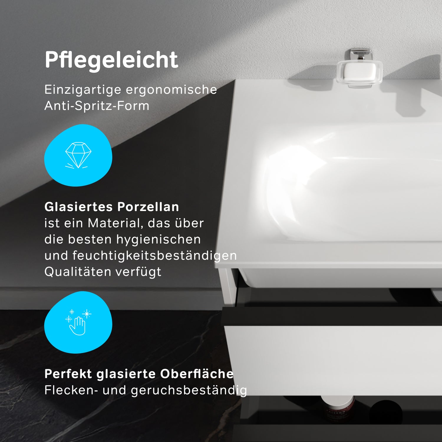 Ensemble prêt à l'emploi : Le meuble sous-vasque est livré avec un lavabo assorti de la même collection.