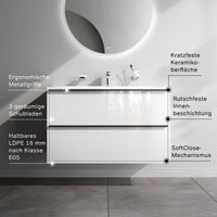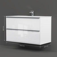 MNA-FHX1002WGSP-WCC1002WG Meuble sous-vasque avec vasque, livré en kit, 100 cm, 2 tiroirs, blanc brillant