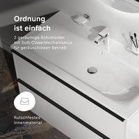 Découvrez le meuble sous-vasque suspendu avec vasque, une pièce maîtresse du design de votre salle de bains. Son design distinctif : lignes épurées, formes marquantes et ergonomie optimale. Deux tiroirs extra-larges, dotés d'un système d'organisation intérieur sophistiqué, offrent encore plus d'espace et une organisation optimale. Un revêtement intérieur antidérapant et une découpe spéciale pour le raccordement du siphon complètent ce concept sophistiqué. Le meuble bas est fabriqué à partir de matériaux robustes et offre une durabilité exceptionnelle.