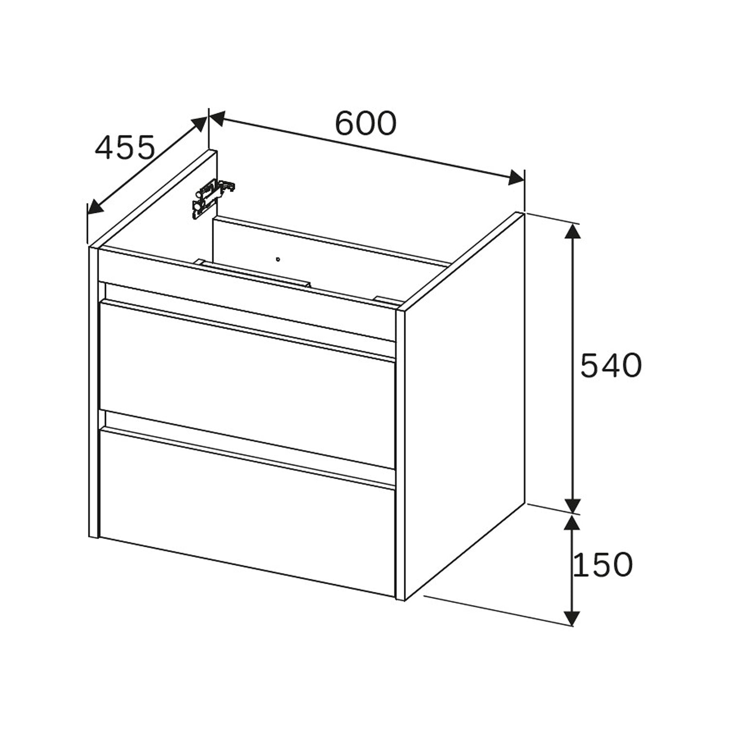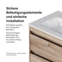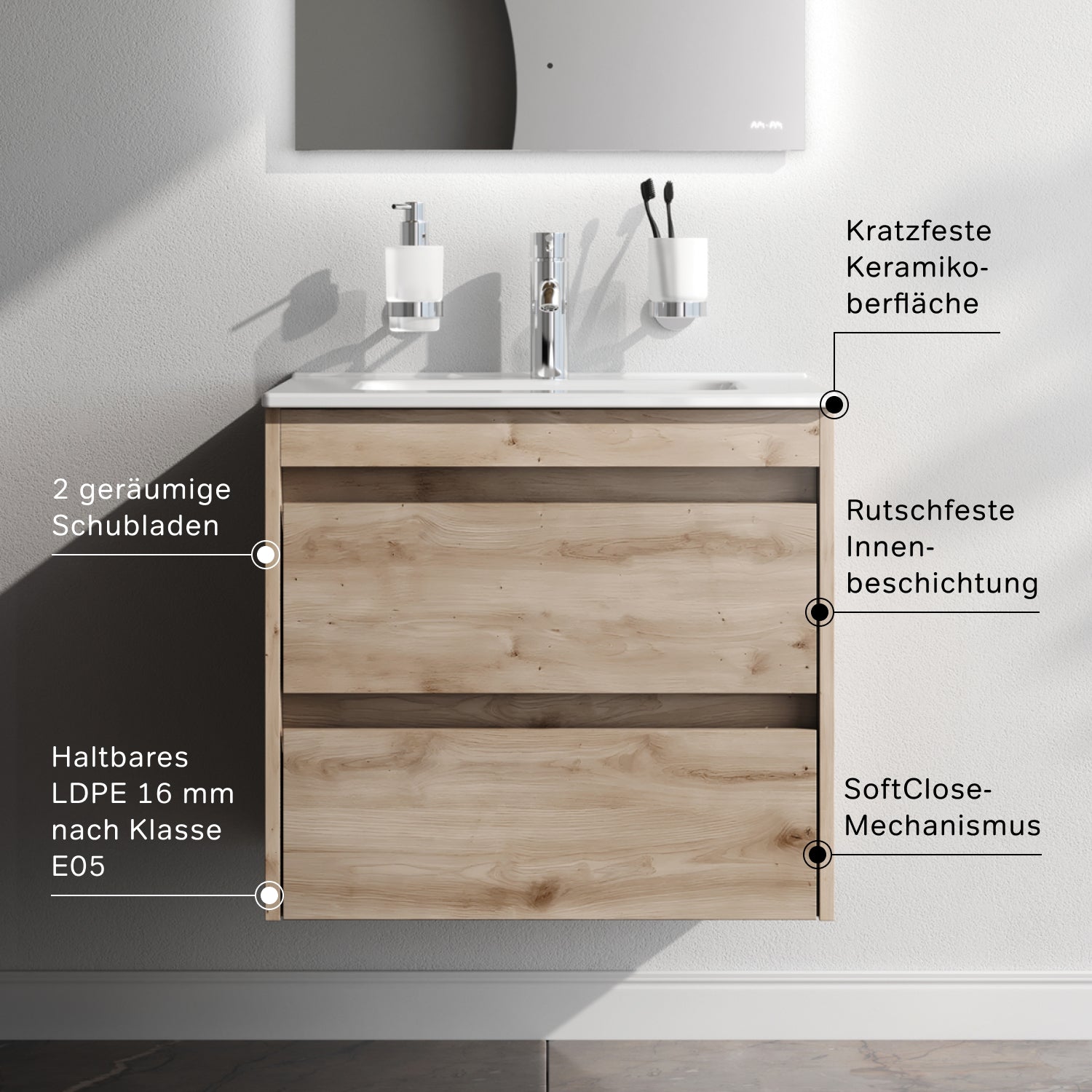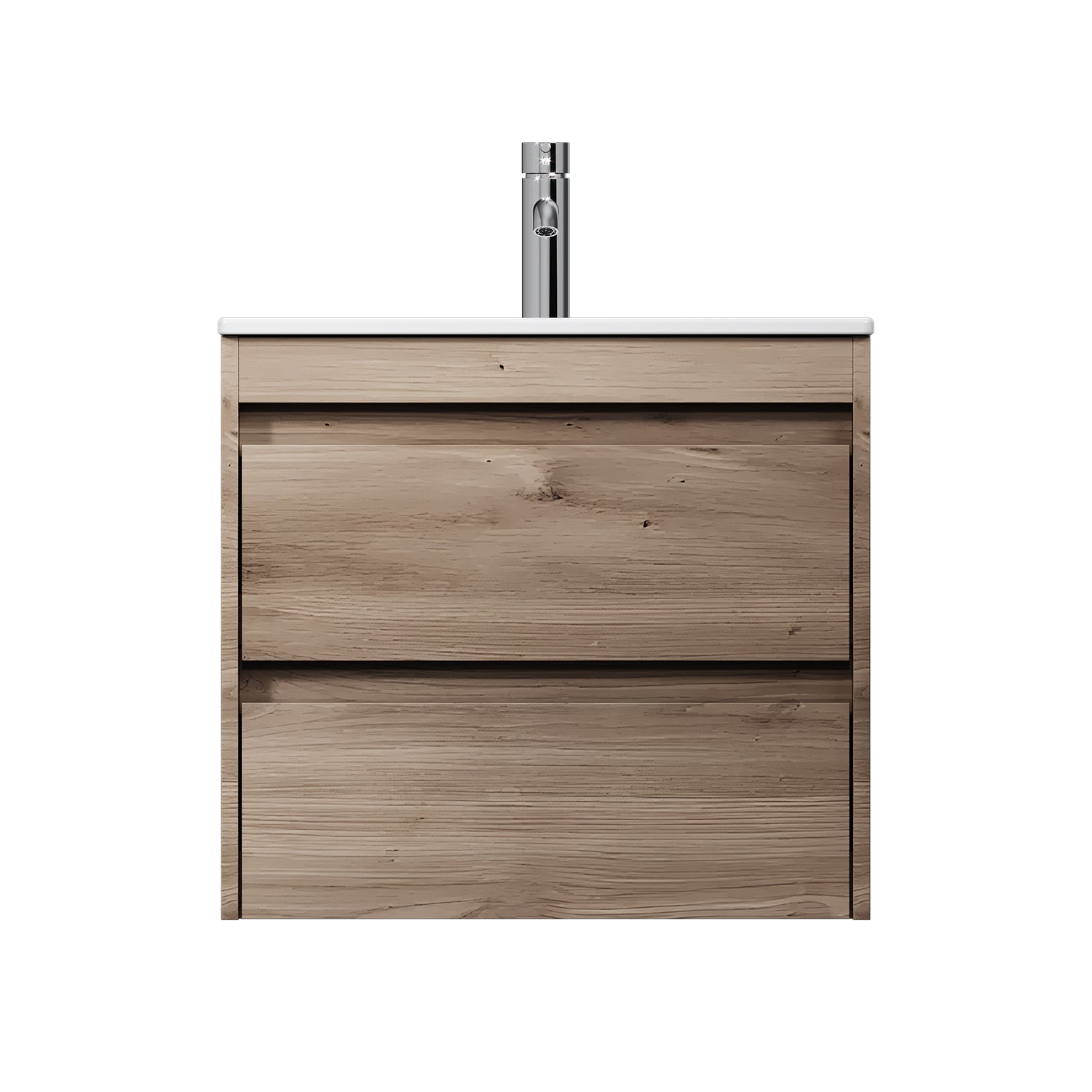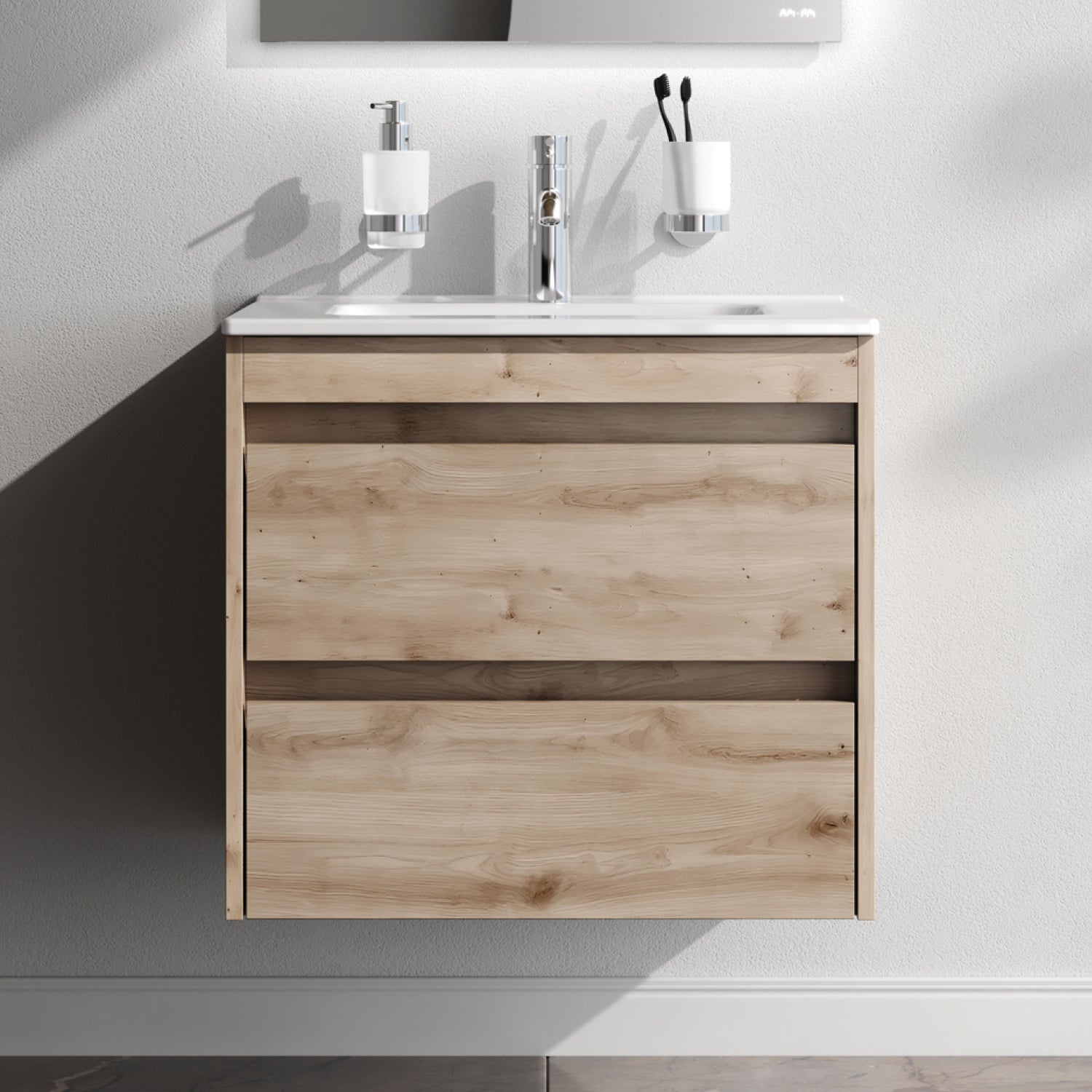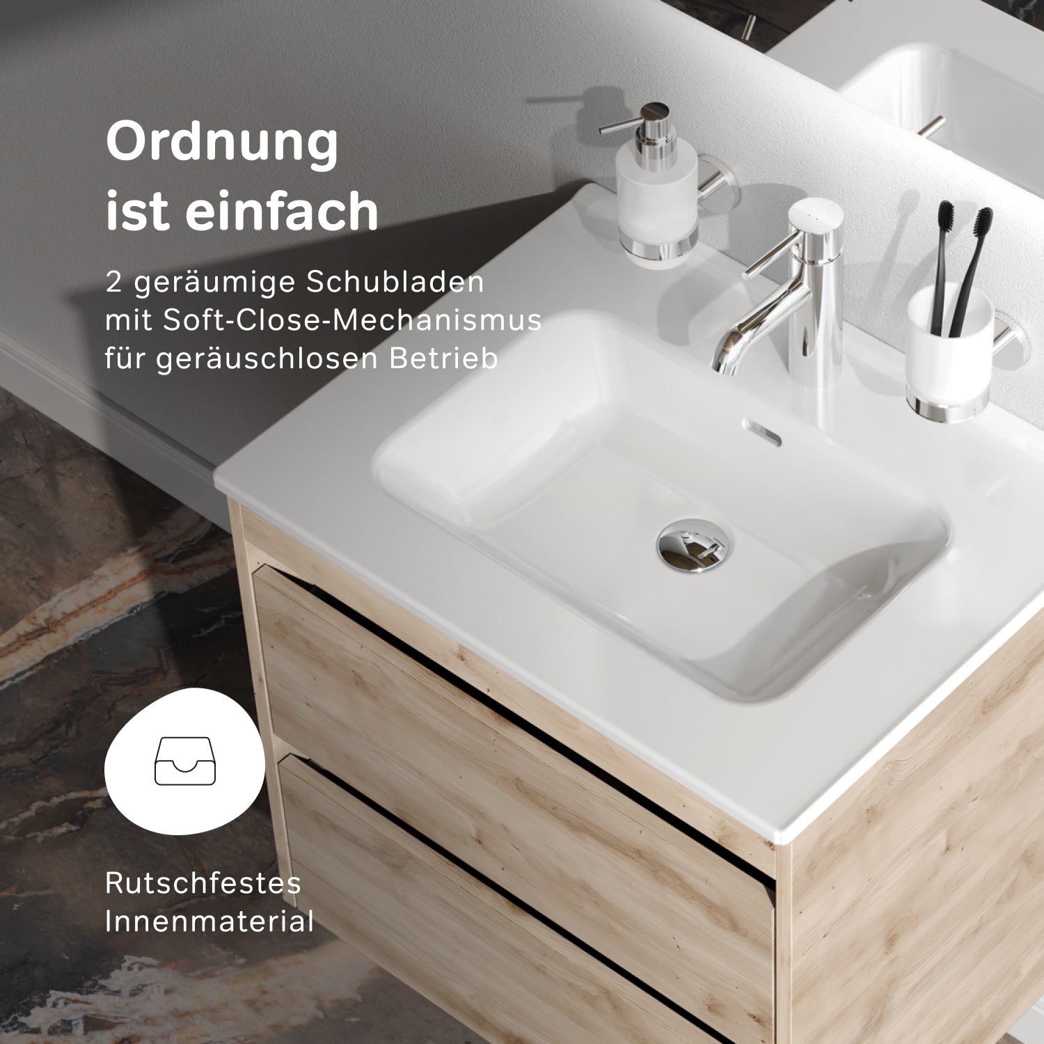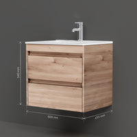 MPAX0602HF-C0602WG Meuble sous-vasque avec vasque, livré démonté, 60 cm, 2 tiroirs, chêne