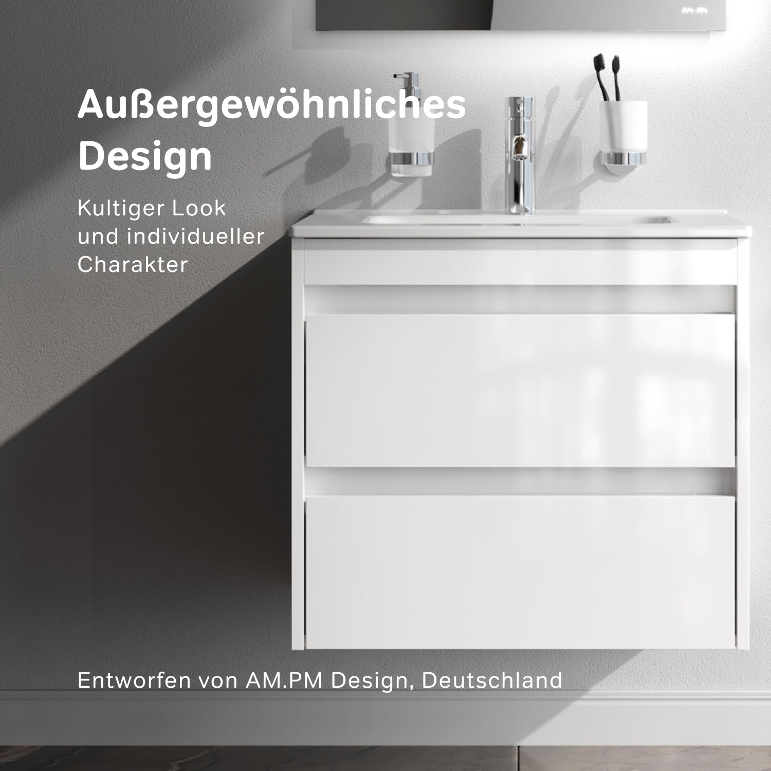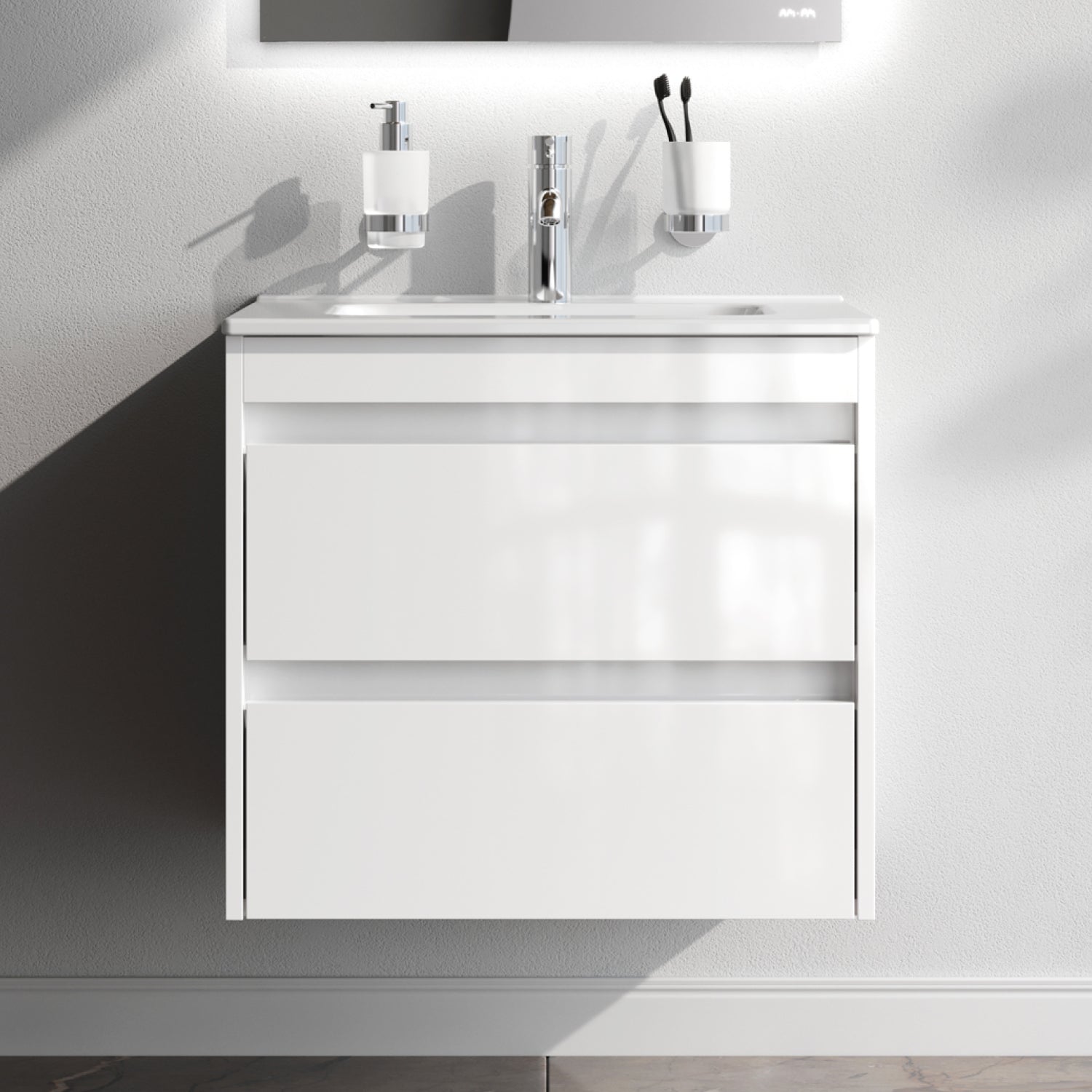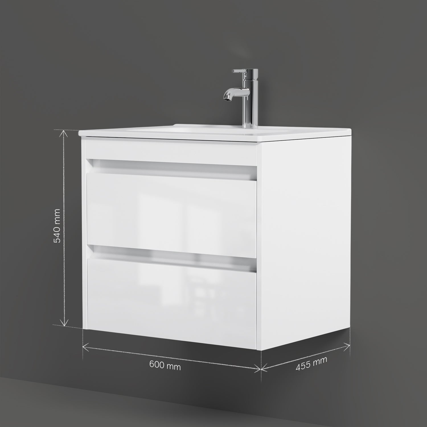 MPAX0602WG-C0602WG Meuble sous-vasque avec vasque, livré démonté, 60 cm, 2 tiroirs, blanc brillant