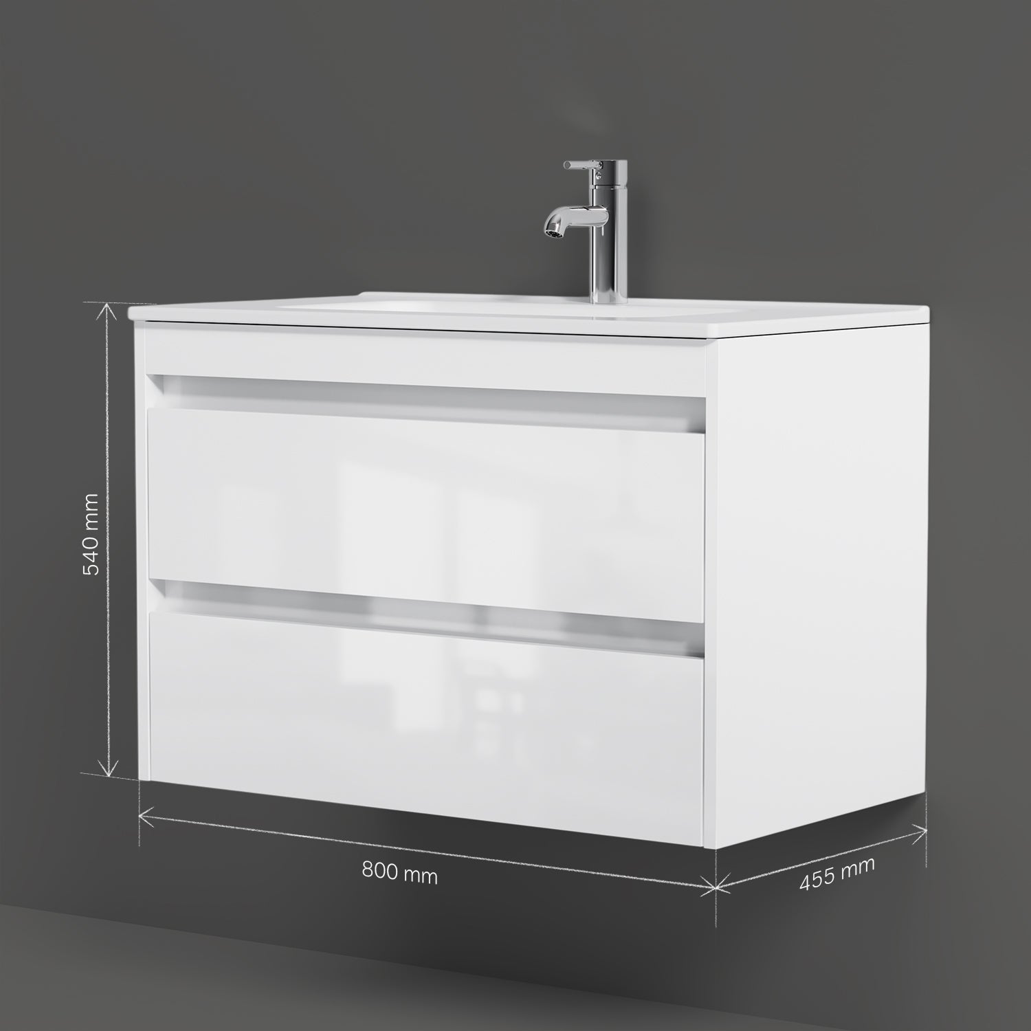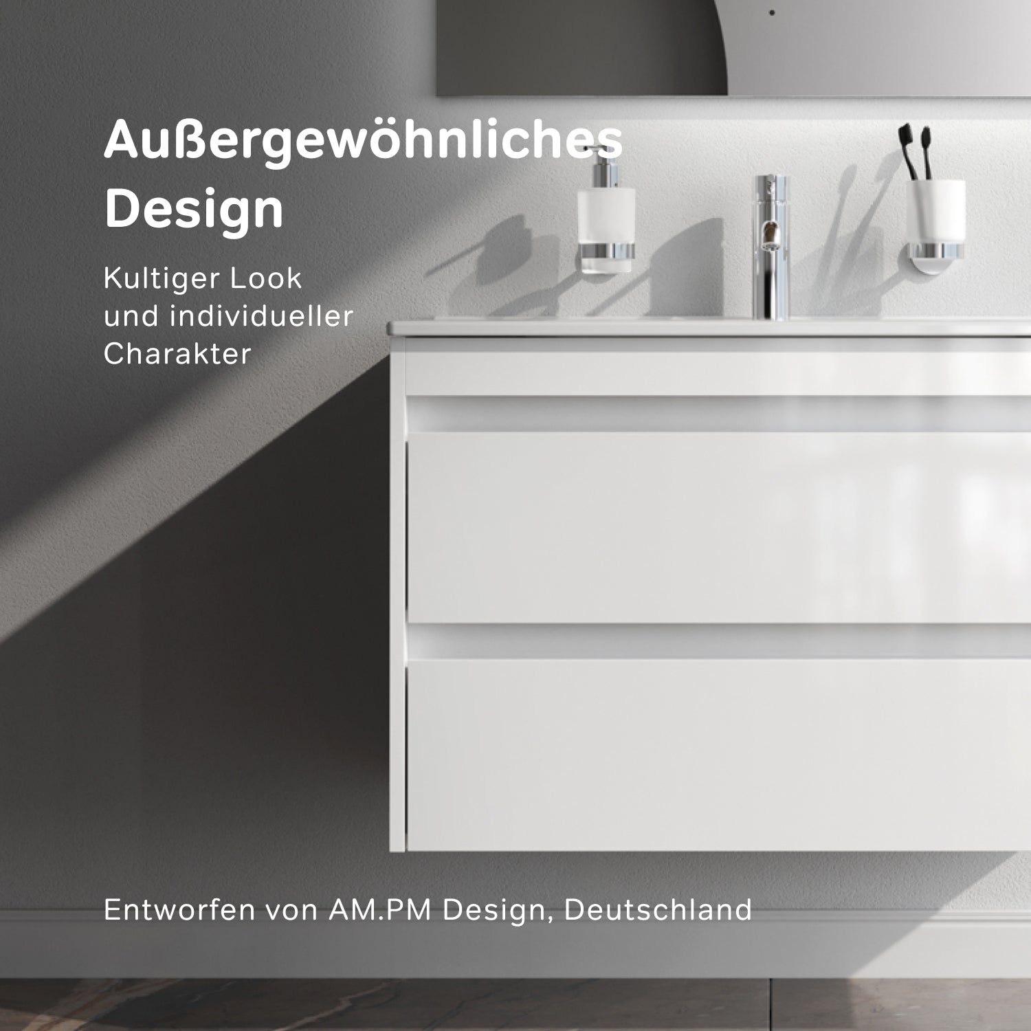 Le meuble sous-vasque suspendu de la collection Spike allie avec brio minimalisme et design raffiné. Sa surface blanc pur et brillante, associée à des touches de couleur graphite, lui confère un caractère raffiné. Sa structure suspendue agrandit visuellement la pièce et lui confère une sensation de légèreté.