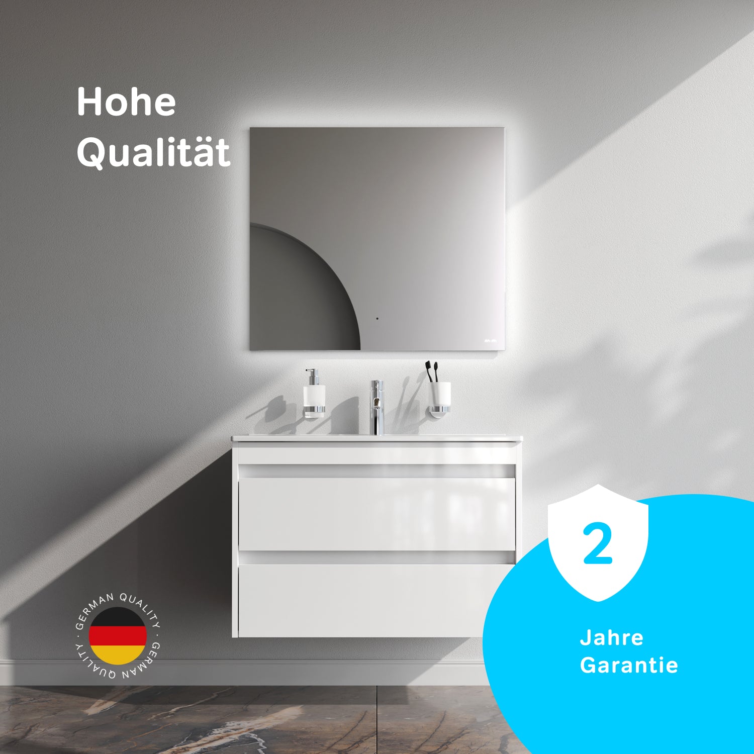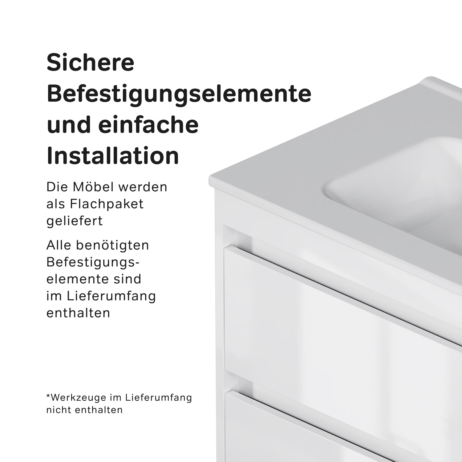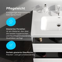 À l'intérieur du meuble, des guides-câbles astucieusement intégrés simplifient l'installation sans compromettre l'esthétique de la salle de bains. Fabriqué en aggloméré stratifié résistant à l'humidité, le meuble bas est à la fois pratique et durable. Ses dimensions compactes le rendent idéal pour les petites salles de bains où chaque centimètre compte.