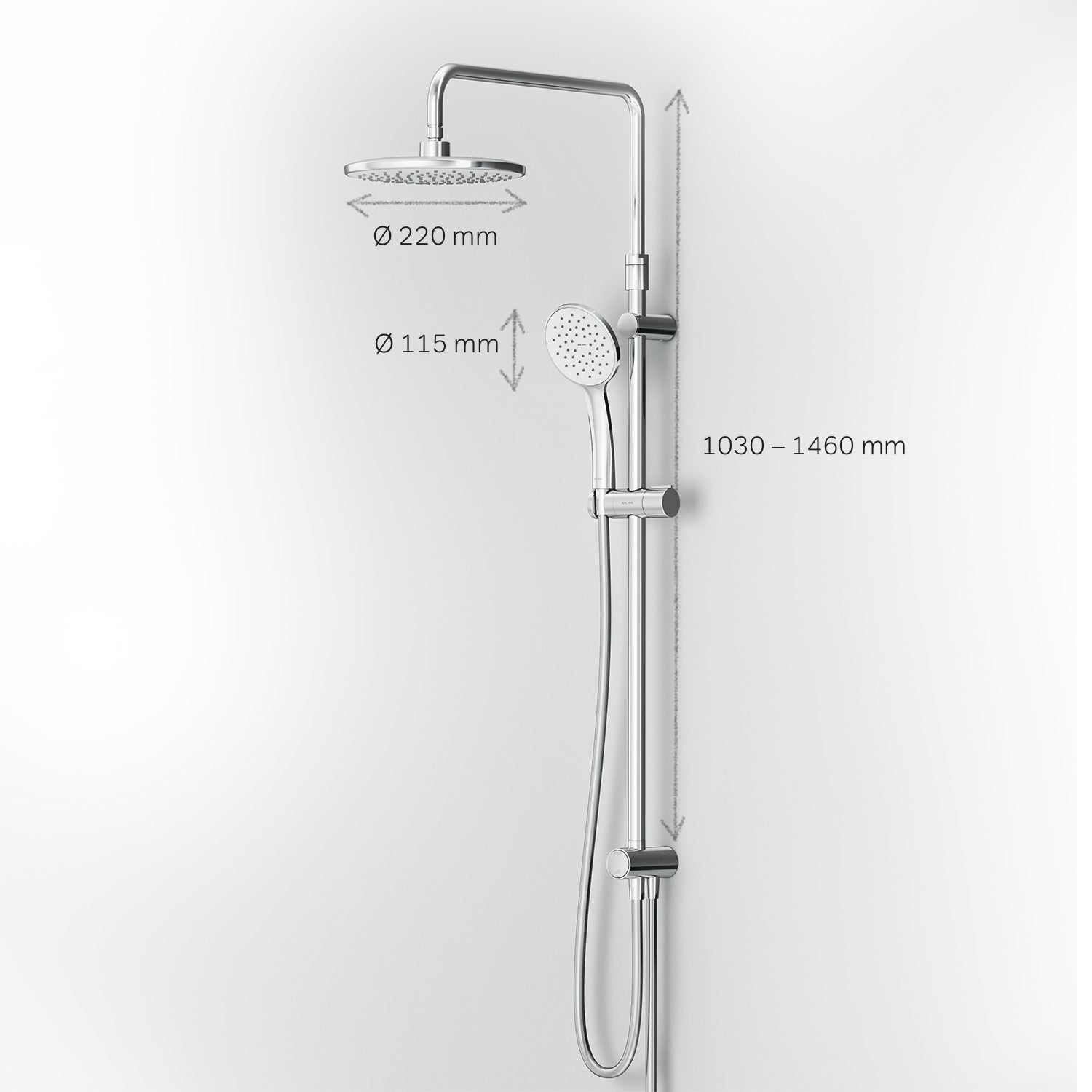 Longueur de la barre de douche: 1030 - 1460