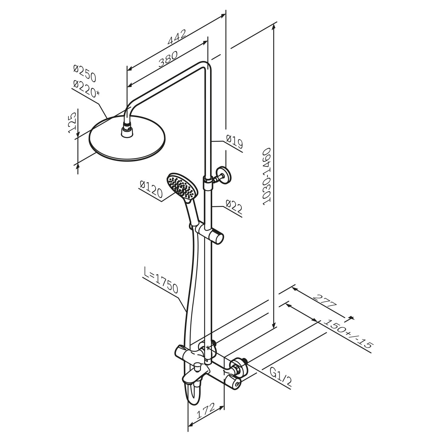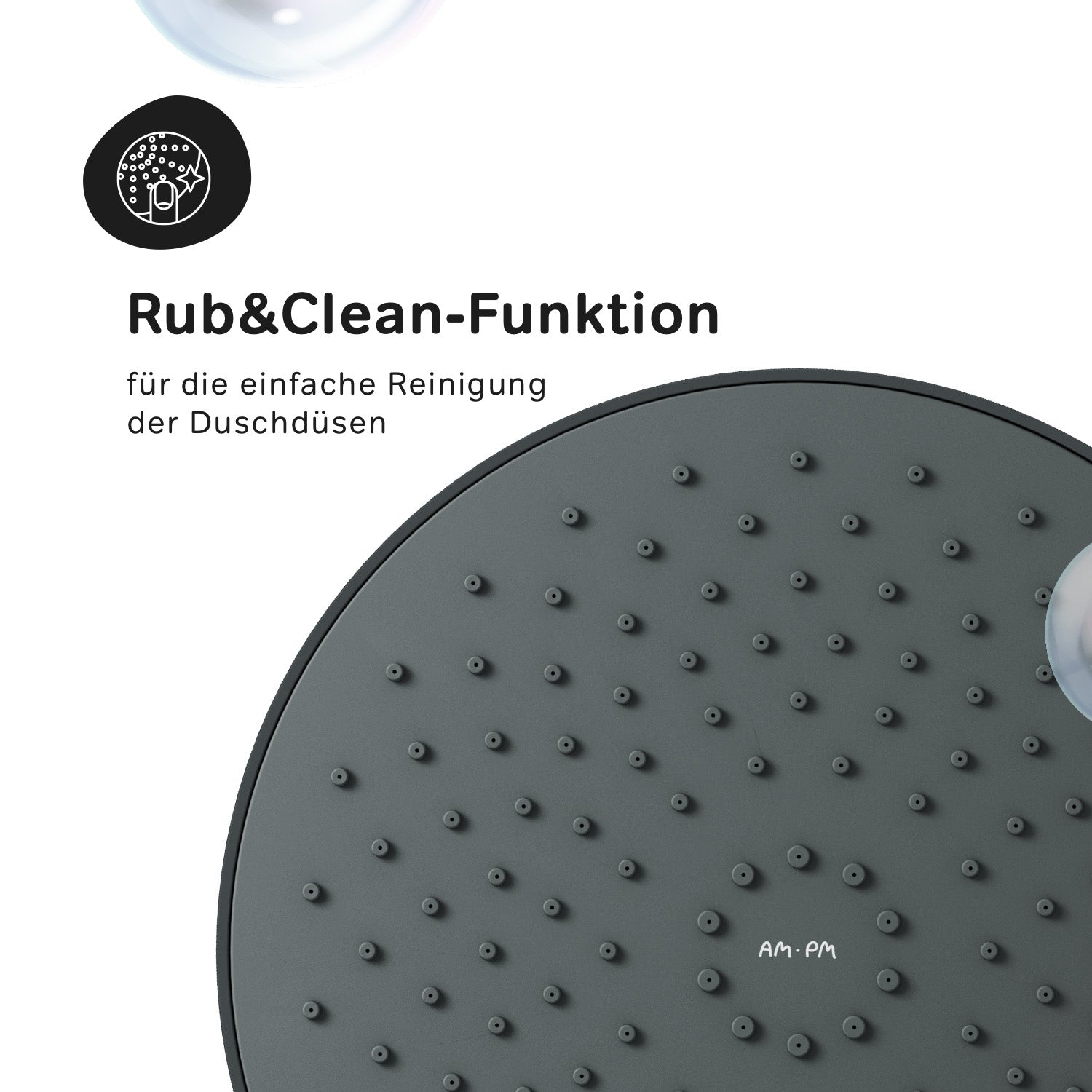 Barre réglable en hauteur de 1030 à 1460 mm, assurant un confort pour les personnes de toutes tailles, rotule dans le support de pommeau de douche permettant de régler l'angle du pommeau de douche, flexible de douche 1750 mm, pommeau de douche 254 mm de diamètre, douchette à main de 120 mm de diamètre. Pression intensive même à basse pression du système : la fonction innovante AIR IN double la pression et réduit la consommation d'eau de 30 %. Cela permet de réaliser des économies, de protéger l'environnement et, surtout, de garantir un plaisir de douche sans faille. Robinet de bain et de douche avec thermostat : Cartouche thermostatique avec thermocouple très sensible, butée de sécurité à 38 degrés, réponse rapide aux changements de température ou de pression, protège de manière fiable contre les brûlures même si l'eau froide est soudainement coupée.
