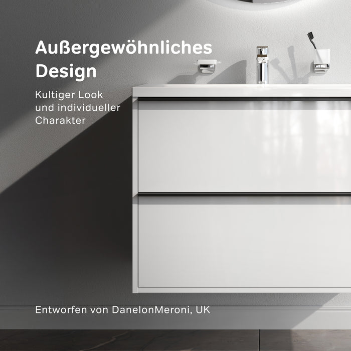Lavabo MNA-FHX0801WG-WCC0802WG avec vasque, 80 cm, 1 tiroir ouvert NIch, Blanc brillant