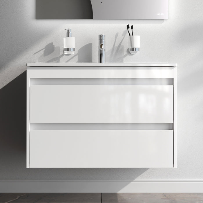 Meuble vasque MNA-FHX0802WG-WCC0802WG avec vasque, 80 cm, 2 tiroirs, blanc brillant