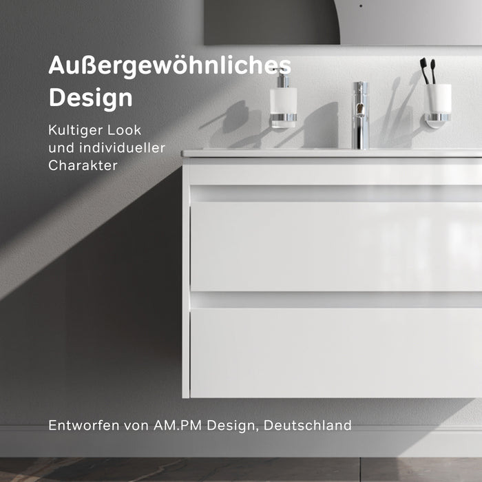 MNA-FHX1002WG-WCC1002WG meuble sous-vasque avec vasque, 100 cm, 2 tiroirs, blanc brillant