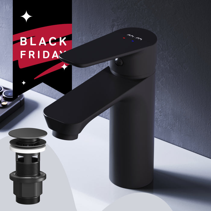 Robinet de salle de bain FTA82222 Robinet de lavabo Hit M-Taille avec robinet de vidange à clic, noir