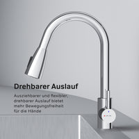 Le robinet est doté d'un bec flexible et extractible qui facilite grandement les tâches telles que le nettoyage de l'évier, le remplissage de grands récipients et le lavage des fruits et légumes. Vous pouvez passer sans effort d'un jet normal à un jet pulvérisateur selon vos besoins.