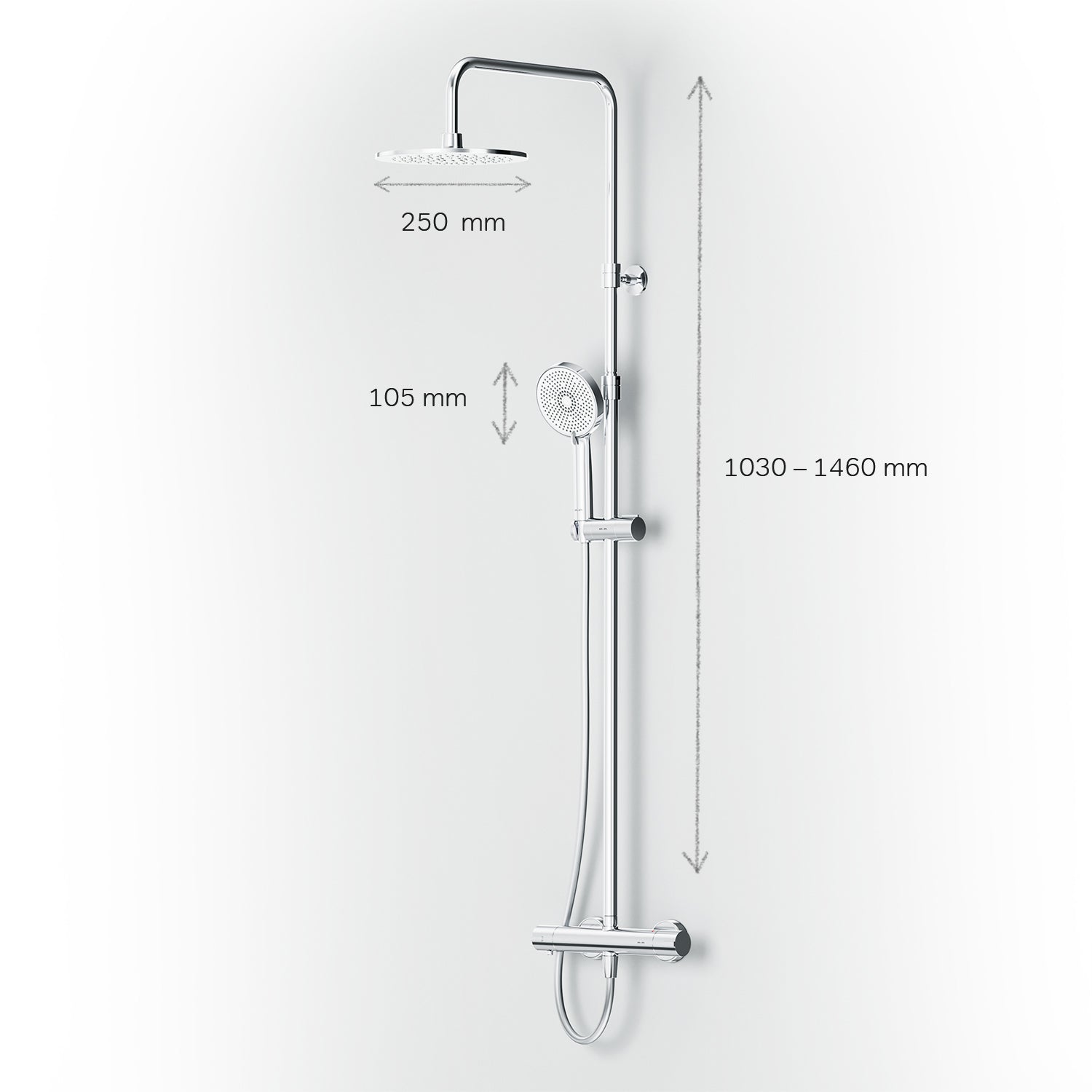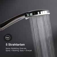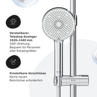 Des détails pensés pour votre confort : la barre de douche télescopique est réglable en hauteur à l'infini, s'adaptant parfaitement à la taille de chacun. Les pommeaux de douche élargis et les cinq jets de la douchette vous garantissent une véritable expérience spa à domicile.