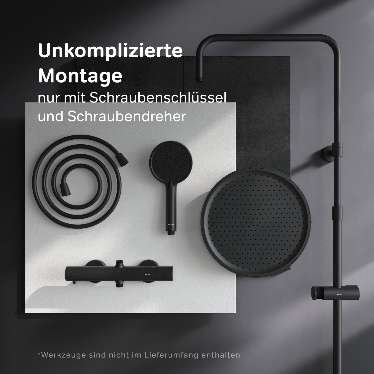 • LIEFERUMFANG: 1x AM.PM F078Z422 Play Showerspot mit Thermostat-Duschmischer (inklusive: Wandhalterung, Duschstange, Deckenbrause, Brausehalter, Duschschlauch, Handbrause, S-Verbinder, Thermostat-Duschmischer), 1x Montageanleitung